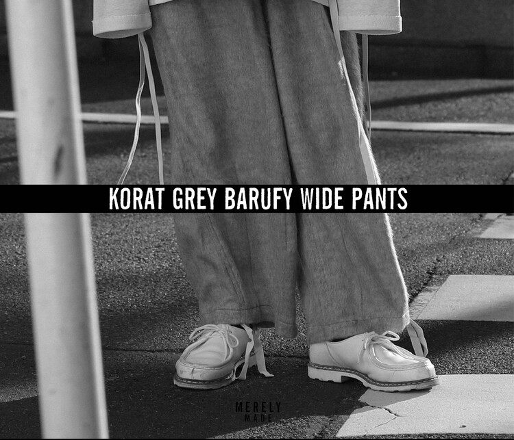 DETAILS: - Takisada barufy mohair blended wool - Vintage front zipper fly - Side slit pockets - Thigh sunglass slit pocket - Bottom hem tape - Extreme super wide fit