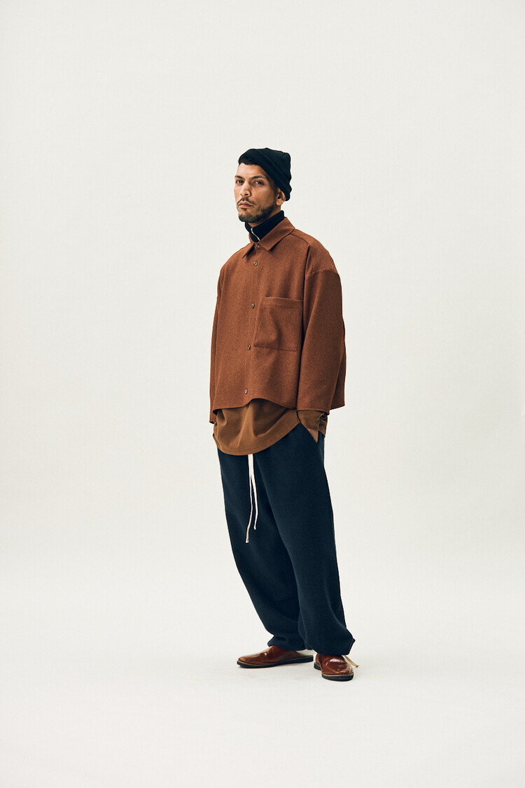 The overall relaxed silhouette has a much longer length than our existing products for the ultimate oversized look, and the string detail for fastening makes different stylings possible.
