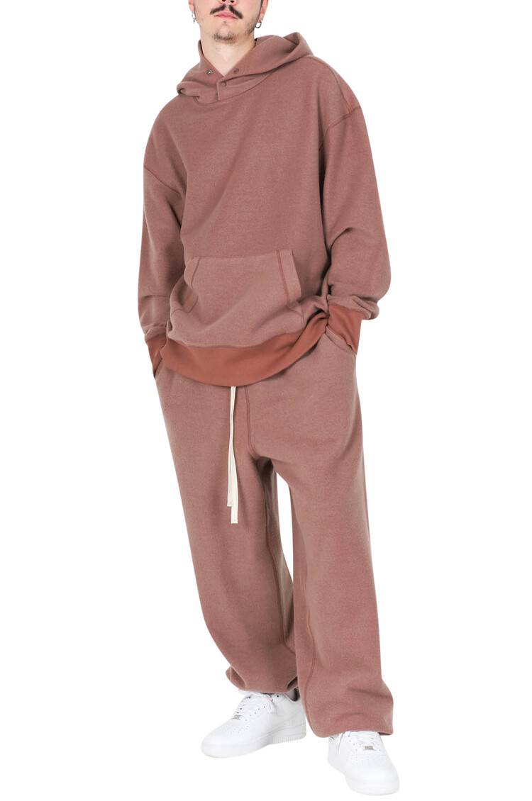 20'S 쭈리원단에 기모가공을 통해 부드러운 터치감을 가진 안쪽면을 리버스로 사용하여 편안하고 따뜻한 기운을 담아내고 가벼우면서도 부드러운 착용감을 여유로운 실루엣으로 담아내었습니다.