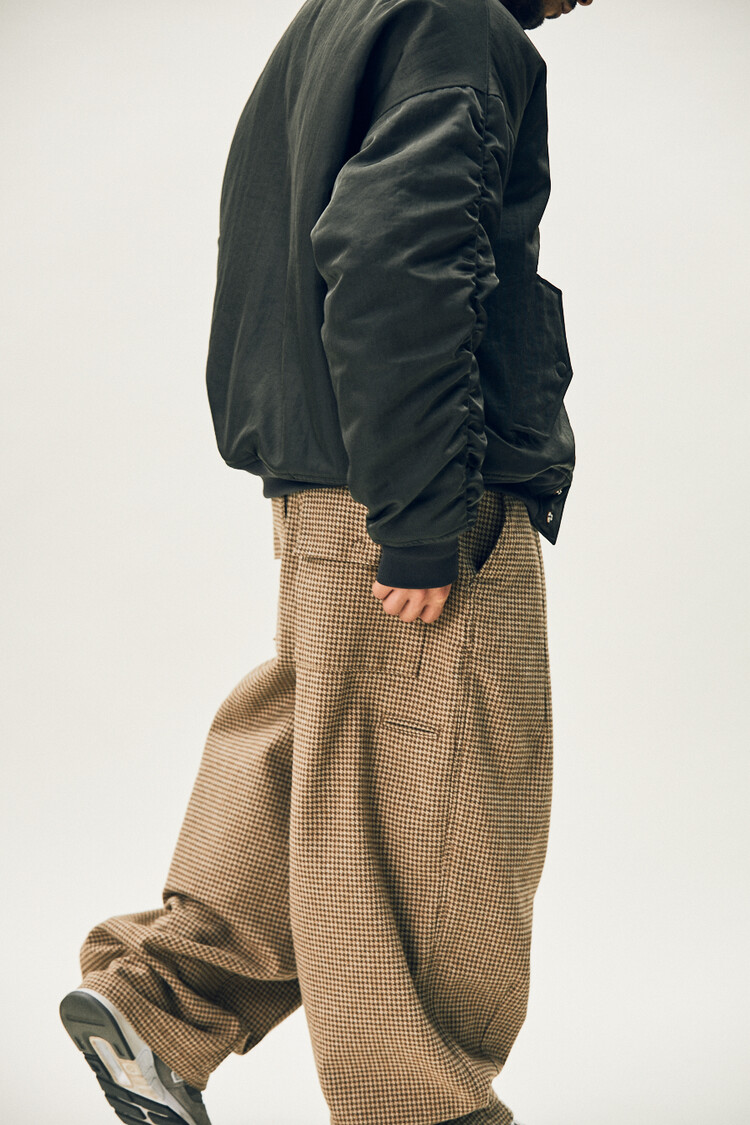 Based on 'TRIPLE LOW TWIST YARN' of 'KUWAMURA' as a base, the houndstooth pattern fabric, which is strong, subtle, and luxurious, suggests a warm and stable color feeling perfect for the F/W season.