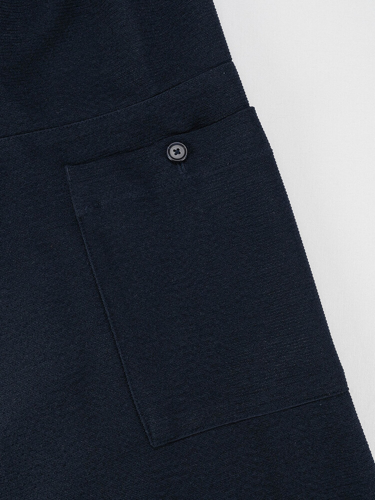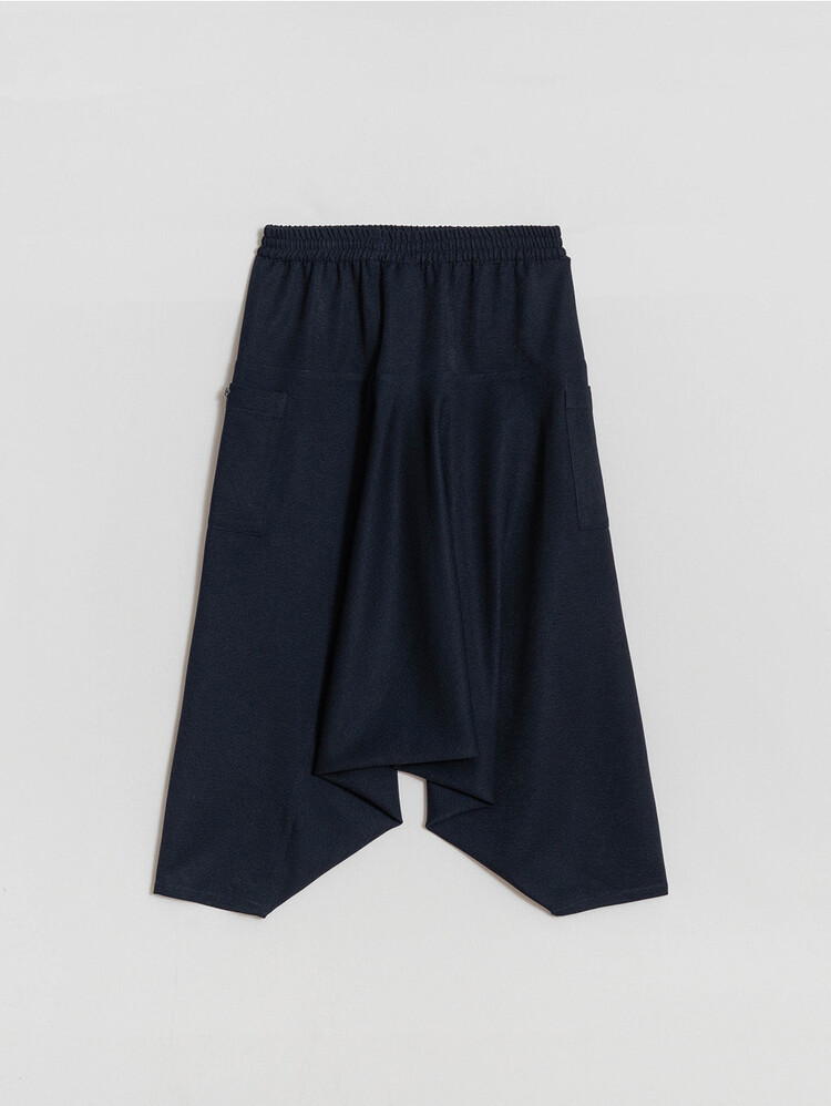 We reinterpreted the typical' THAI HAREM PANTS', conceived perfectly for free movement and comfort in a humid & hot environment. The 'THAI HAREM PANTS' is designed here in a modern way based on solid sewing by adopting thin polyester ribbed fabric from Japan's 'VANCET', and a waistband with a comfortable fit and two left/right pockets for easy storage. This item is available in GOLD, a color that symbolizes Thailand, but also NAVY, and BLACK.