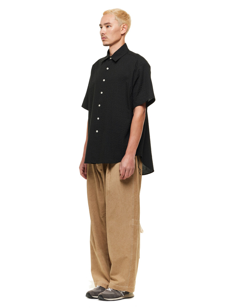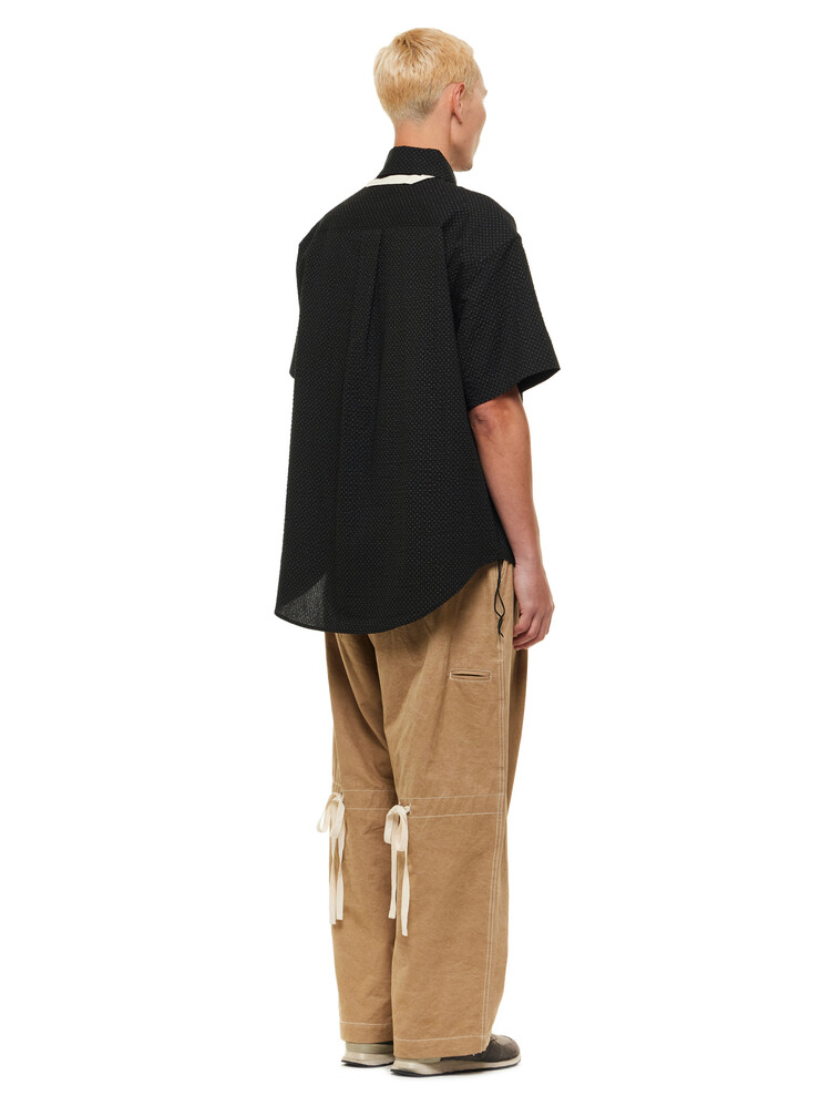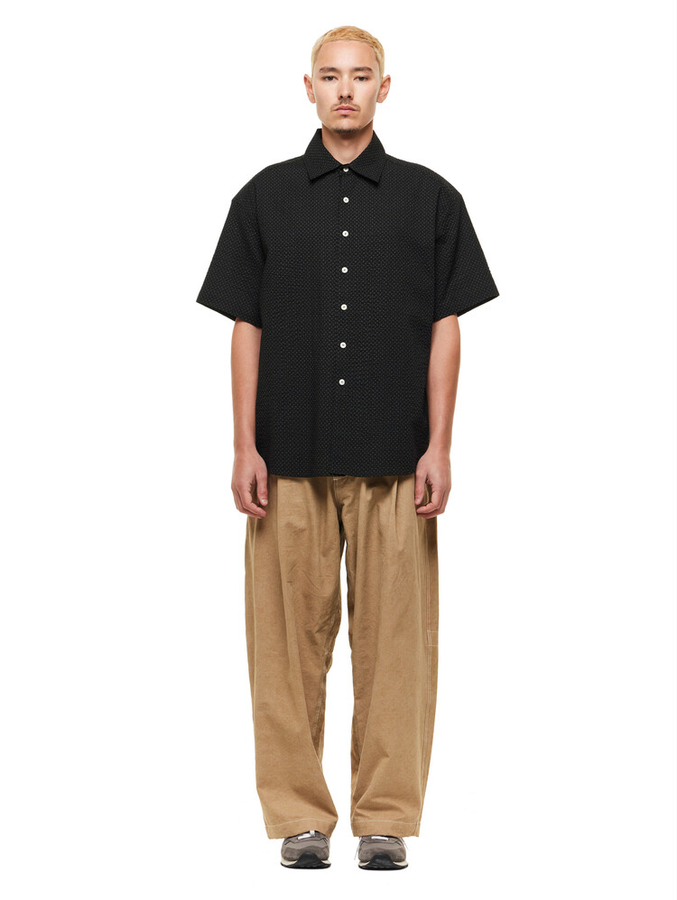 BLACK MERELY SASHIKO PRINTED OVERSIZED SHORT SLEEVE SHIRT