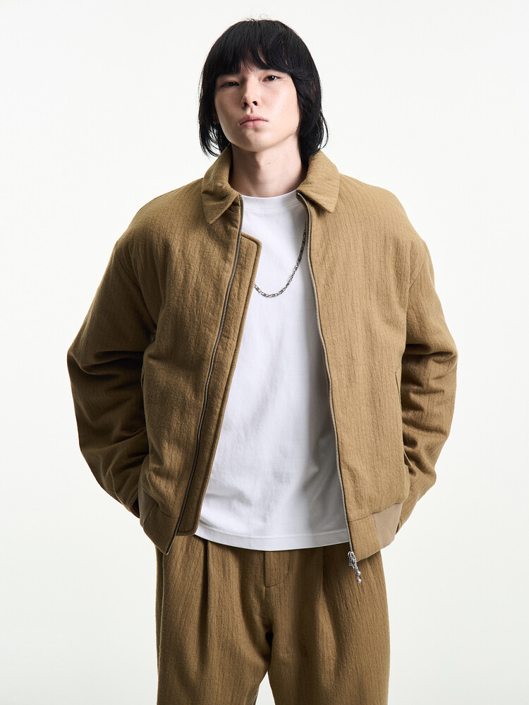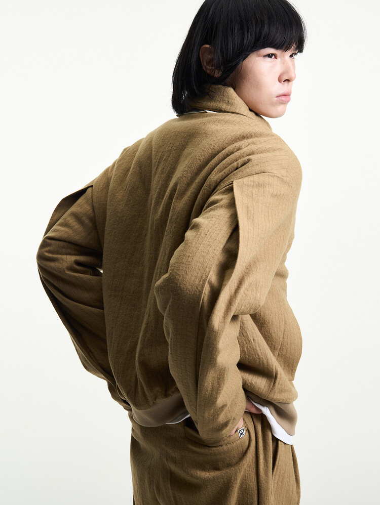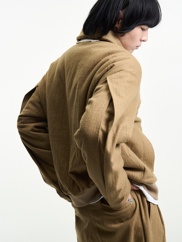 PEANUT BROWN MERELY PREMIUM VINTAGE WOOLEN STRIPE BLOUSON