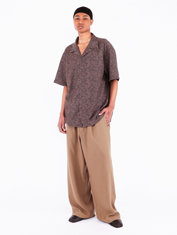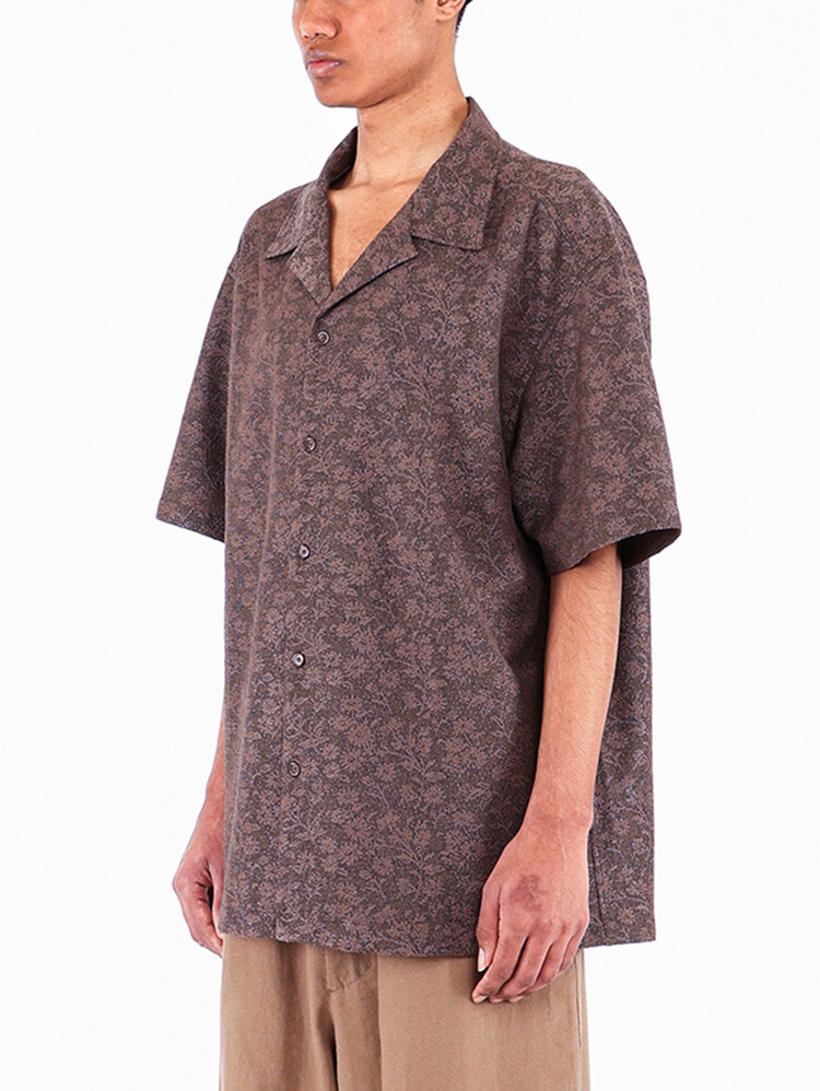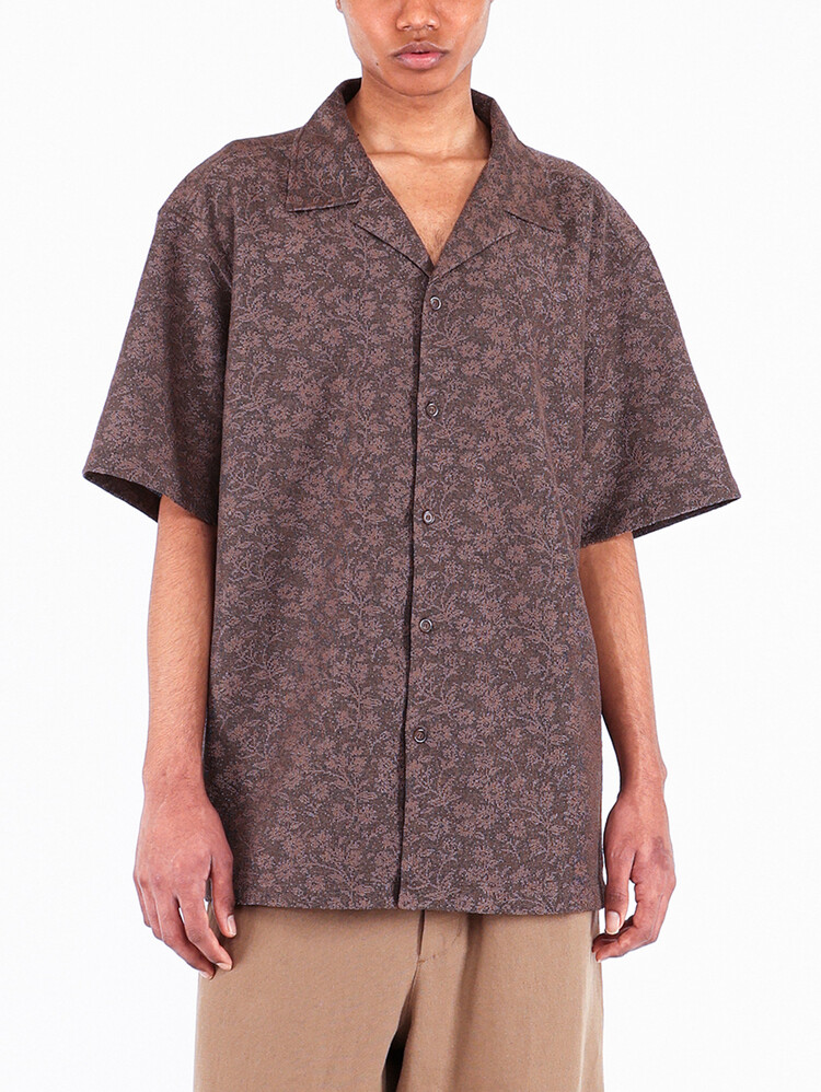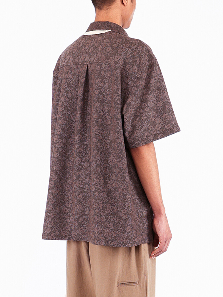 BURNING BROWN MERELY FLOWER JACQUARD LACE CUBAN COLLAR SHIRT
