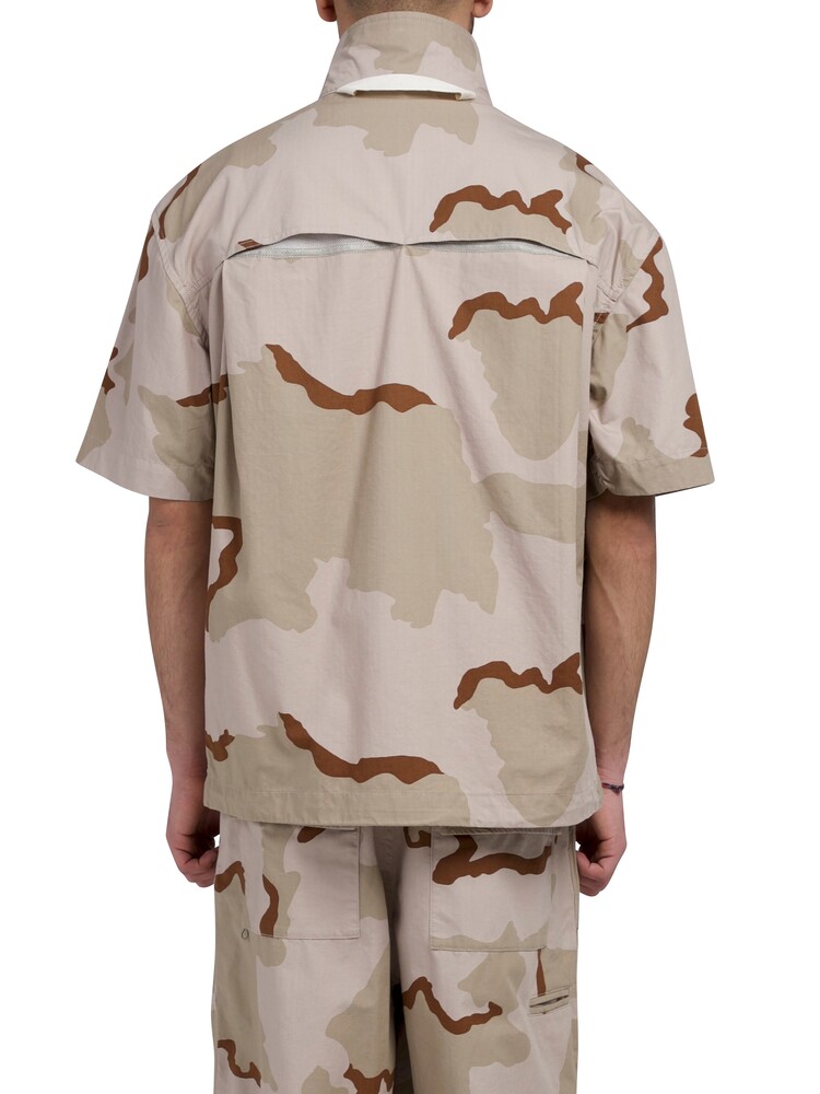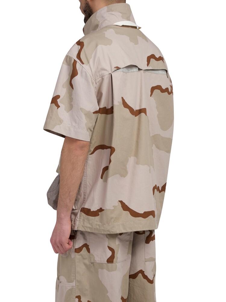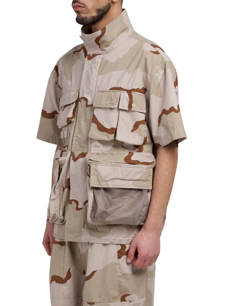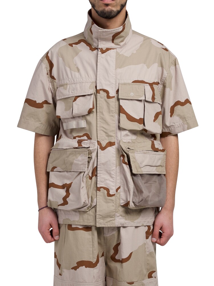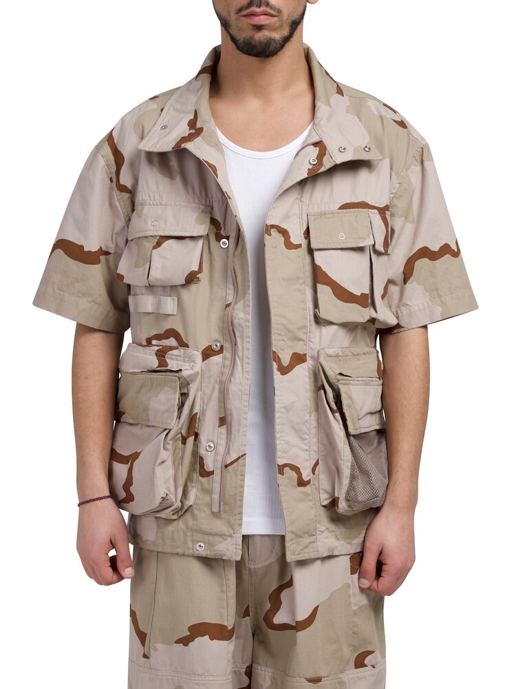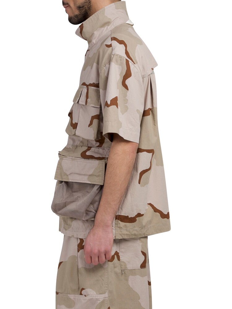 사막의 모레바람과 뜨거운 태양으로부터 케어해주며 베낭이 없이도 멀티수납의 기능을 갖춘 'SAND STORM JACKET' 입니다. 일본 SHIBAYA사의 COTTON RIP 조직 원단을 적용하여 'DESERT CAMOUFLAGE PANTS' 아이템과 SET-UP으로 제안하였으며 앞판 상단에 3개 각기 다른 사이즈의 활용도가 좋은 아웃 패치포켓과 멀티루프, 하단에는 지퍼를 활용한 넉넉한 사이즈의 2WAY 아웃 패치포켓이 자리하고 있어 극한 기후에서 활동성의 자유로움과 수납의 용이함을 극대화 하였습니다.