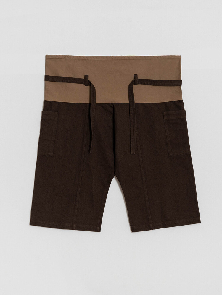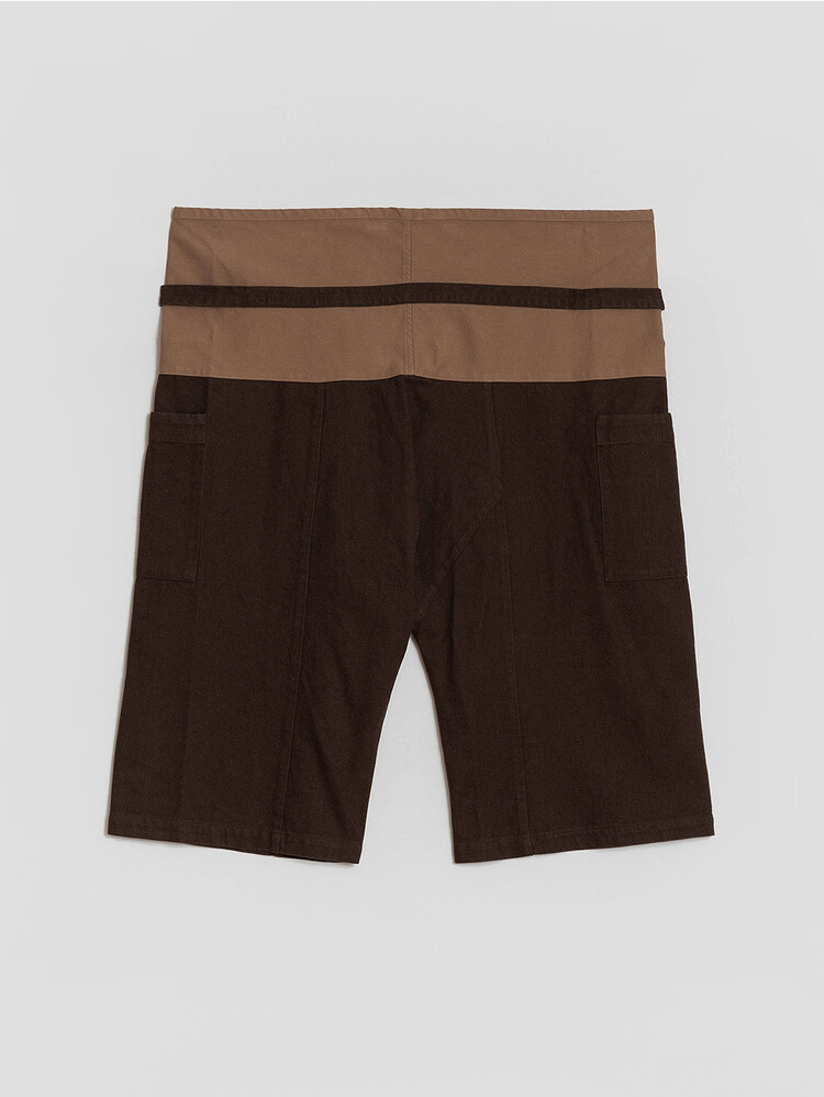 'THAI MASSAGE PANTS' and 'VINTAGE WORK JACKET' are suggested as matching set. These are 'THAI MASSAGE PANTS' offering a wide range of silhouettes on a box-shaped wide pattern and adjustable waist. By pairing the thick vintage gabardine fabric from Japan's 'KOYAMA' with soft 10'S washable cotton at the waist, it has a heavy and luxurious feel but is comfortable to wear. This item is a modern revisit of the classic Southeast Asian attire and is typically tied with a bold strap.