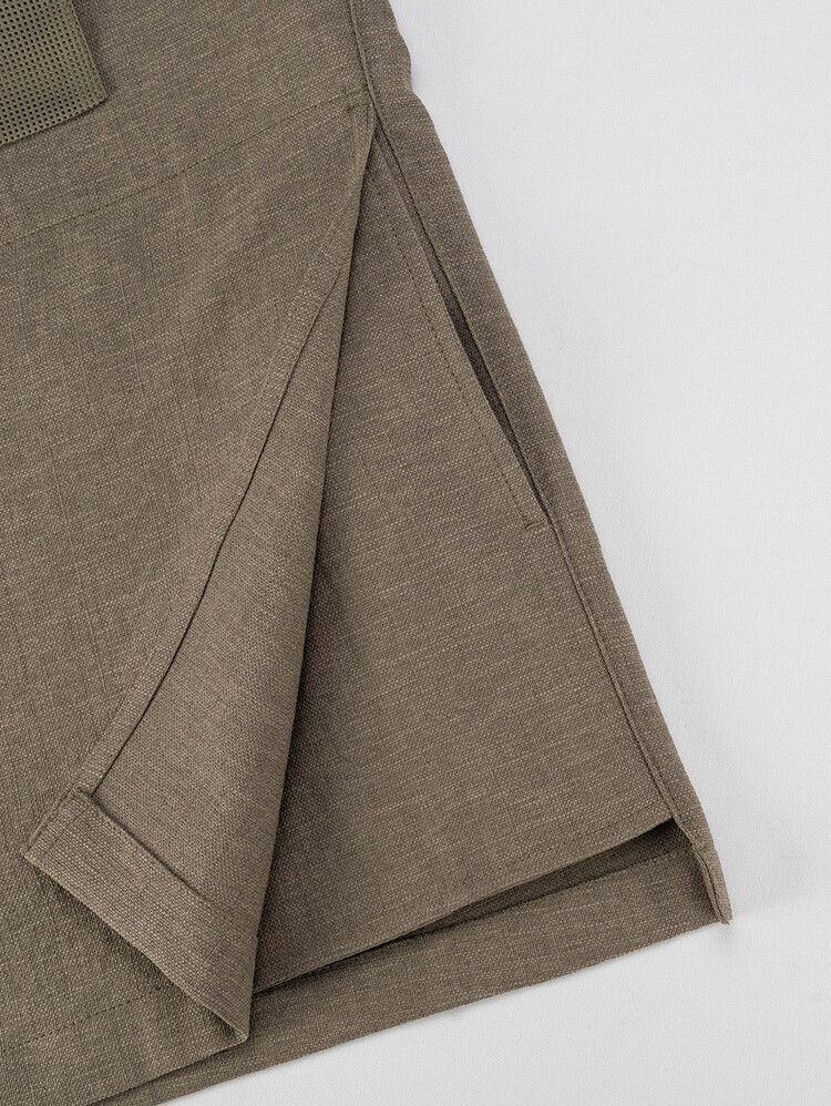 This is the '4POCKET SKIRT JACKET' comfortable and functional top of the matching set. The poly-recycled chambray fabric of Japan's 'TORAY' is used to enhance light comfort and coolness, and the refined silhouette suggests effortless stylish styling. The details are made of a light mesh fabric, which emphasizes seasonality. The jacket has a total of four storage pockets, including two flap ones on the chest and side pockets.