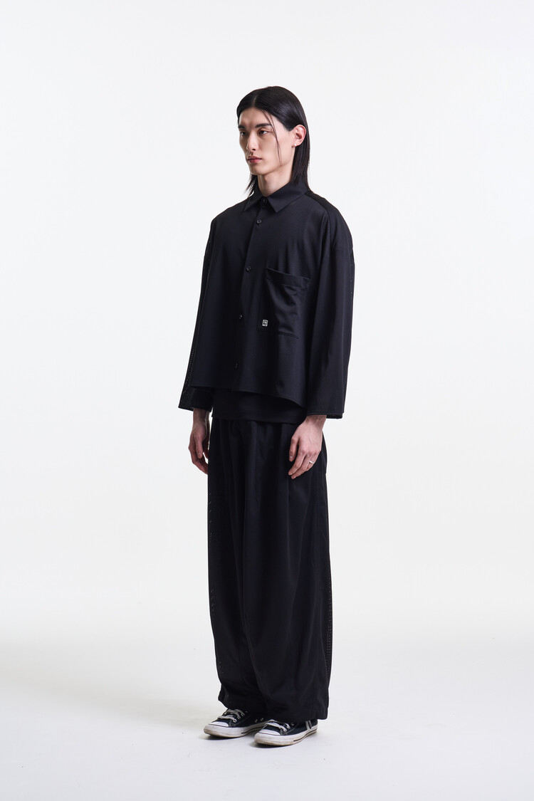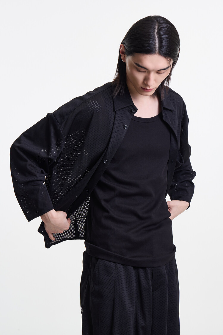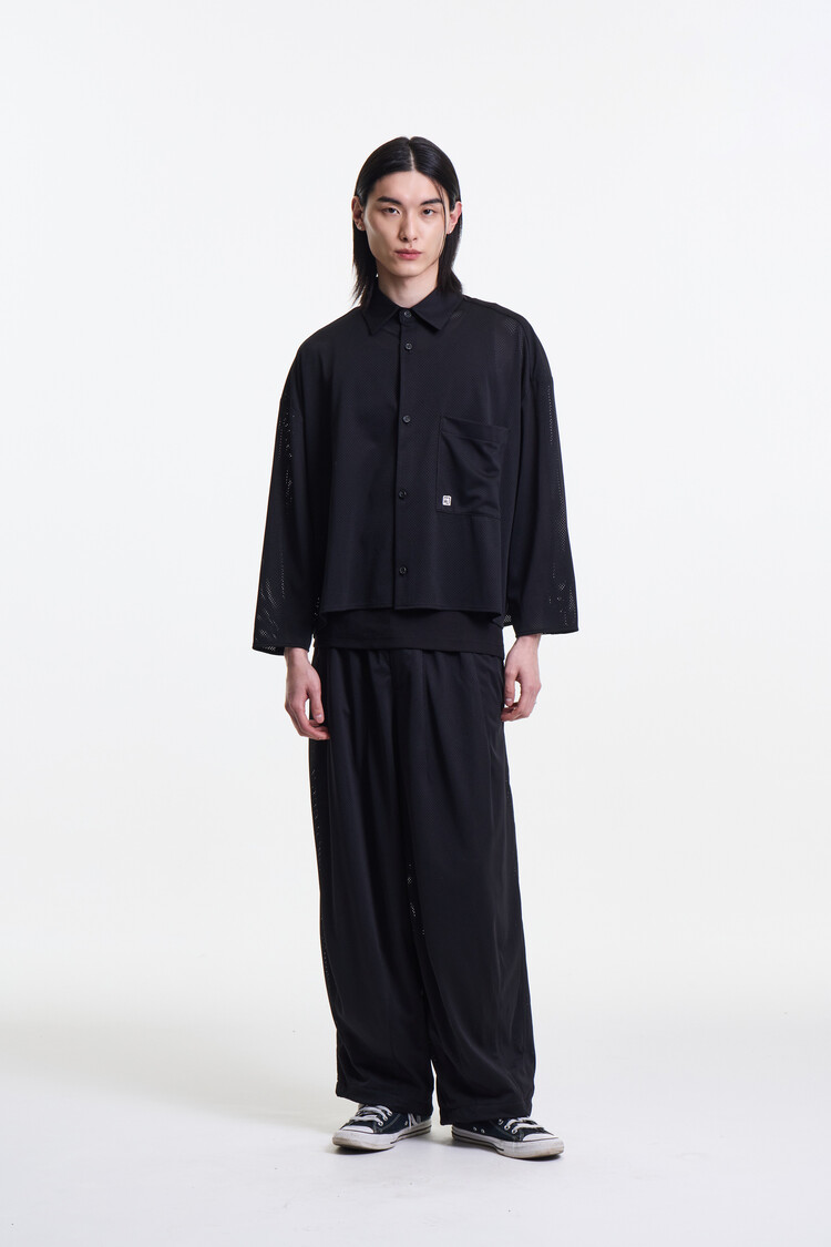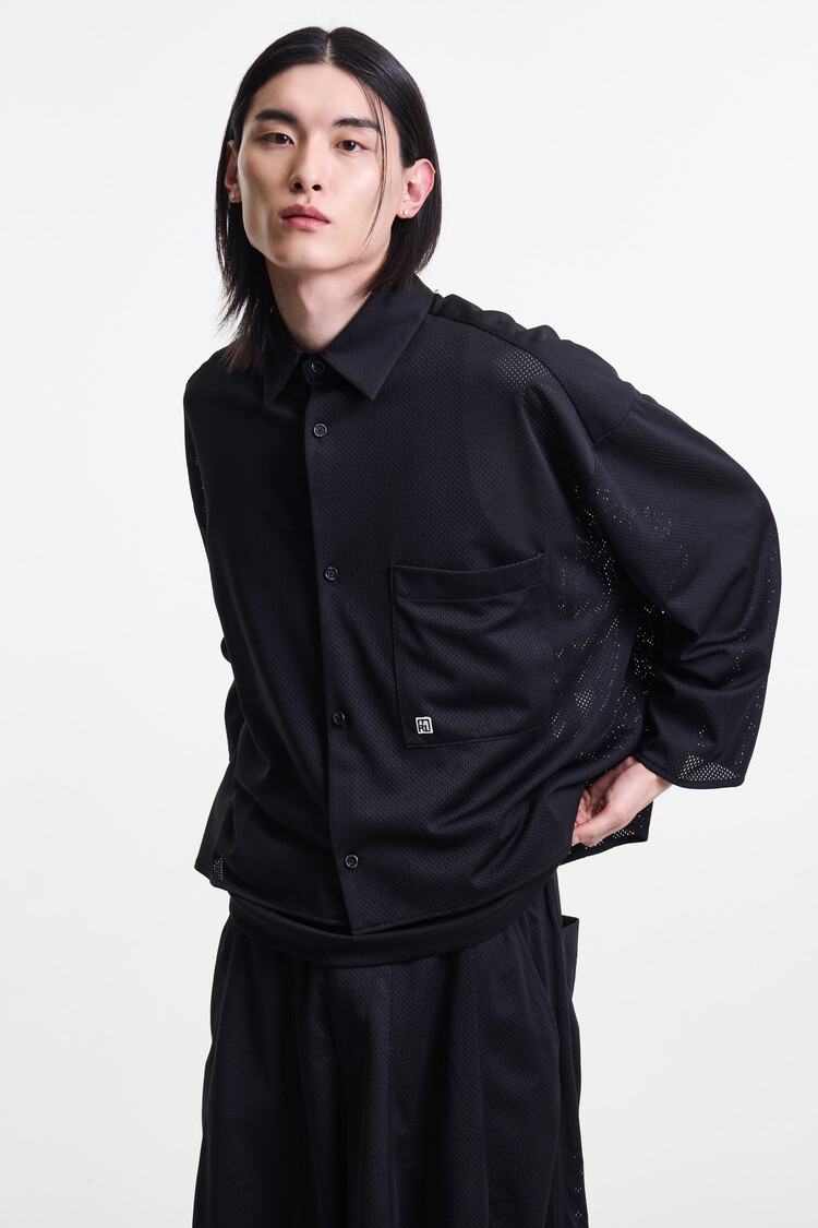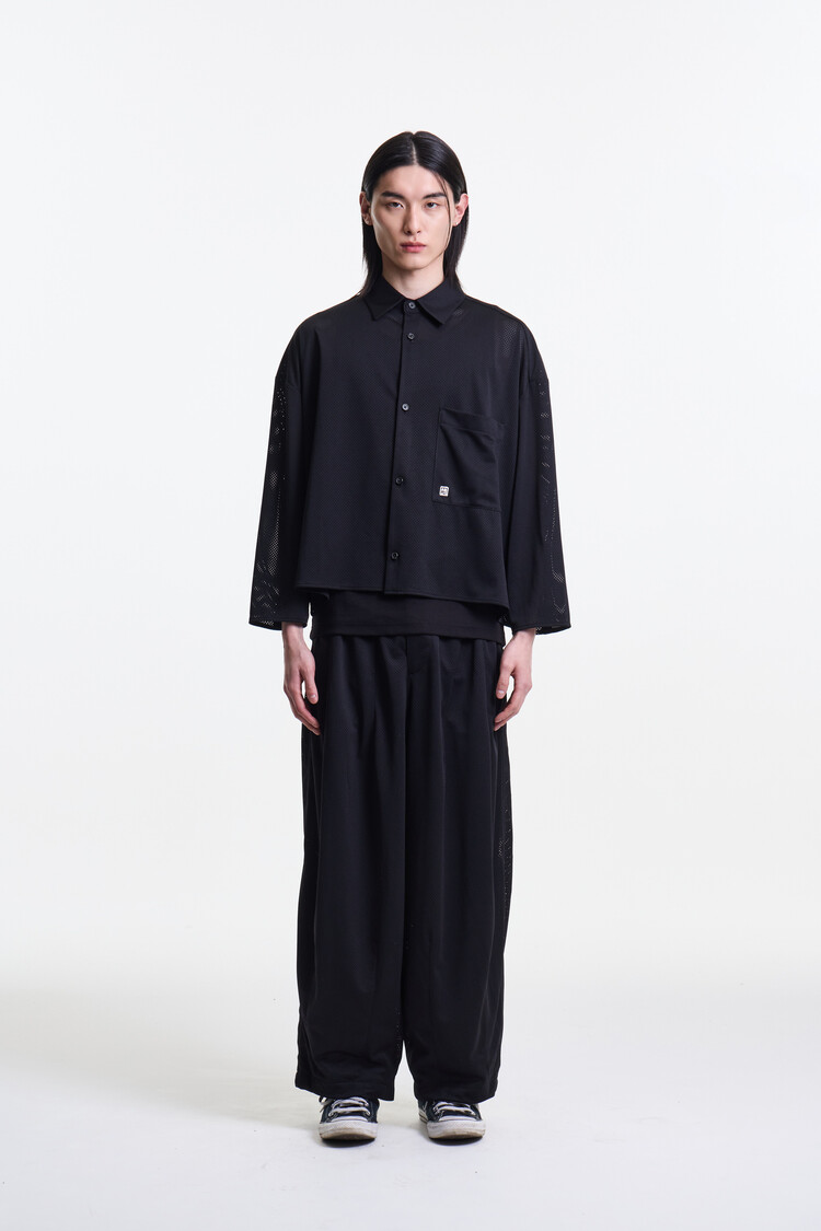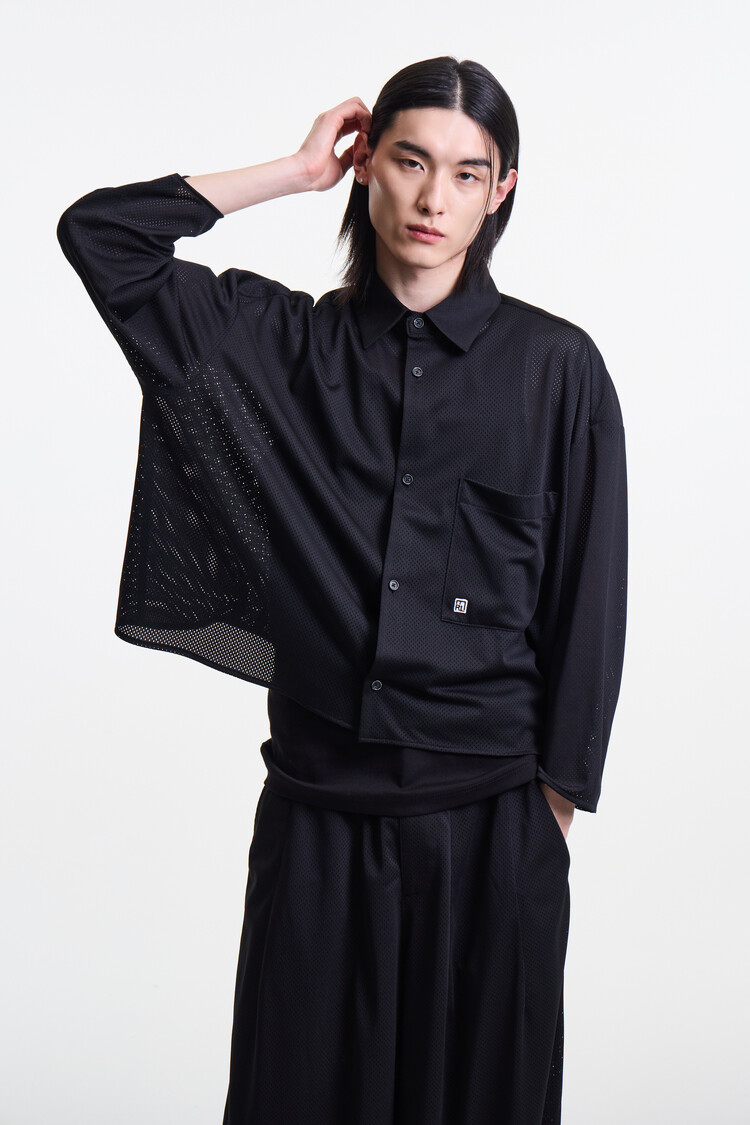 COOL BLACK MERELY US MESH CROPPED SHIRT