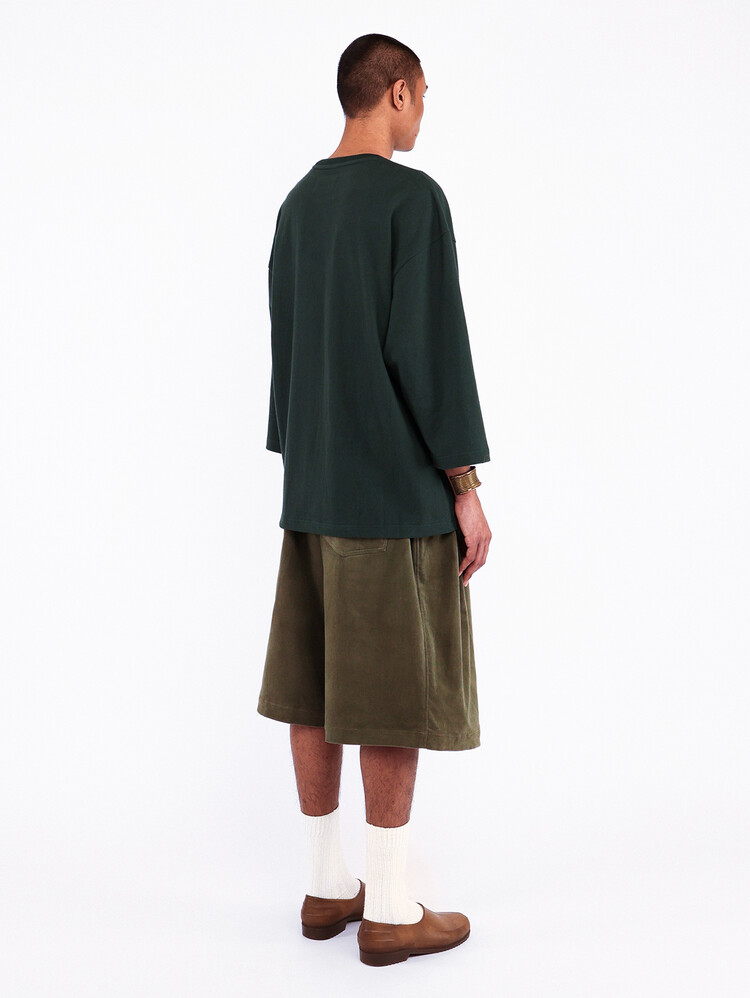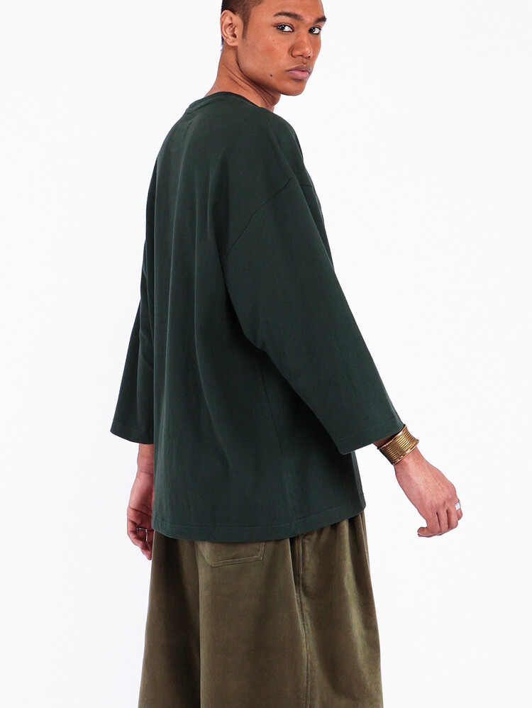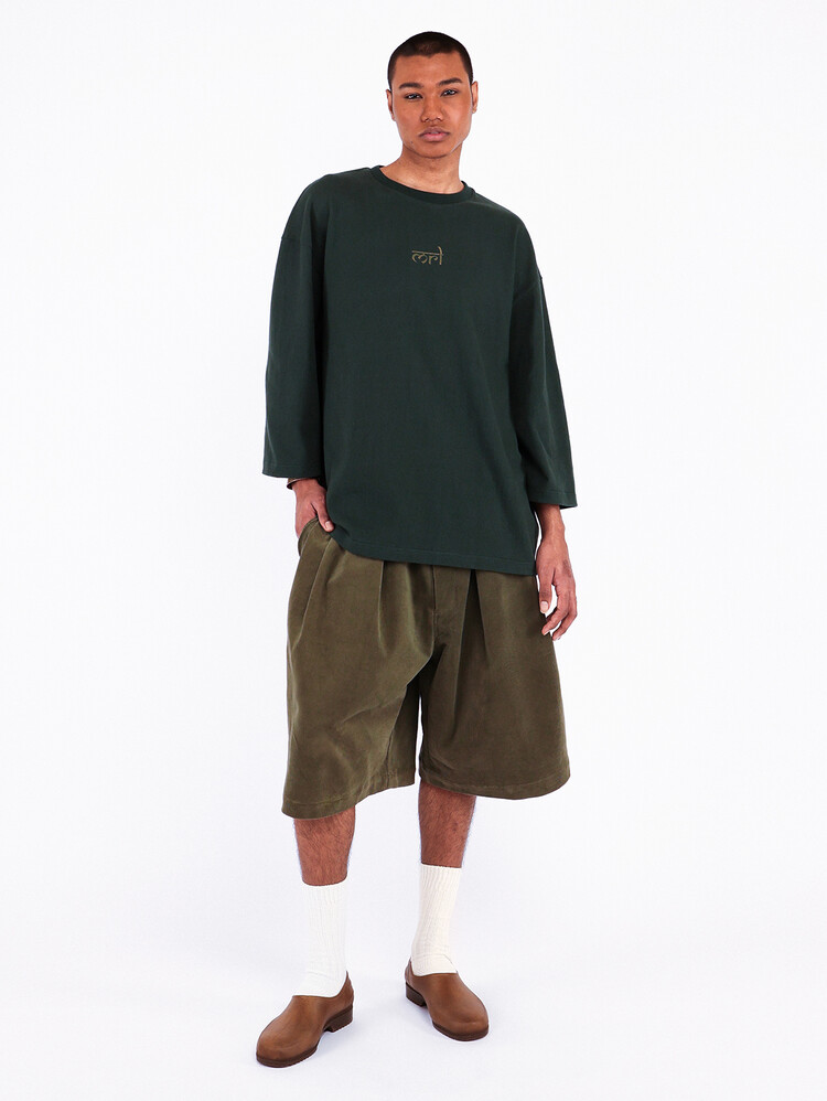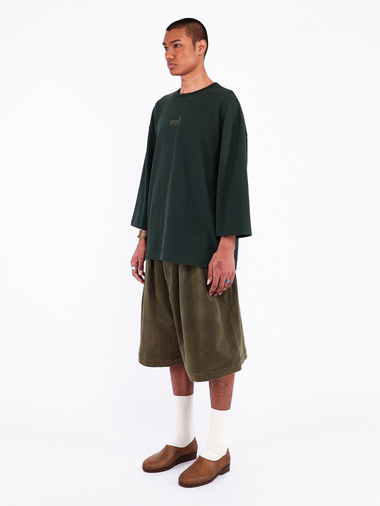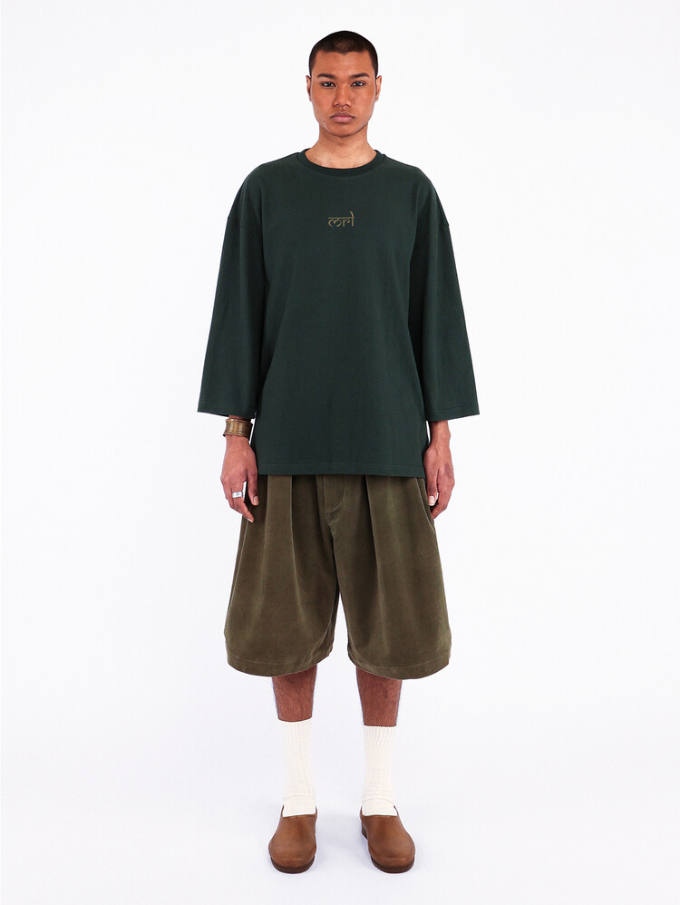 DARK GREEN MERELY INDIAN INITIAL LOGO CROPPED T-SHIRTS