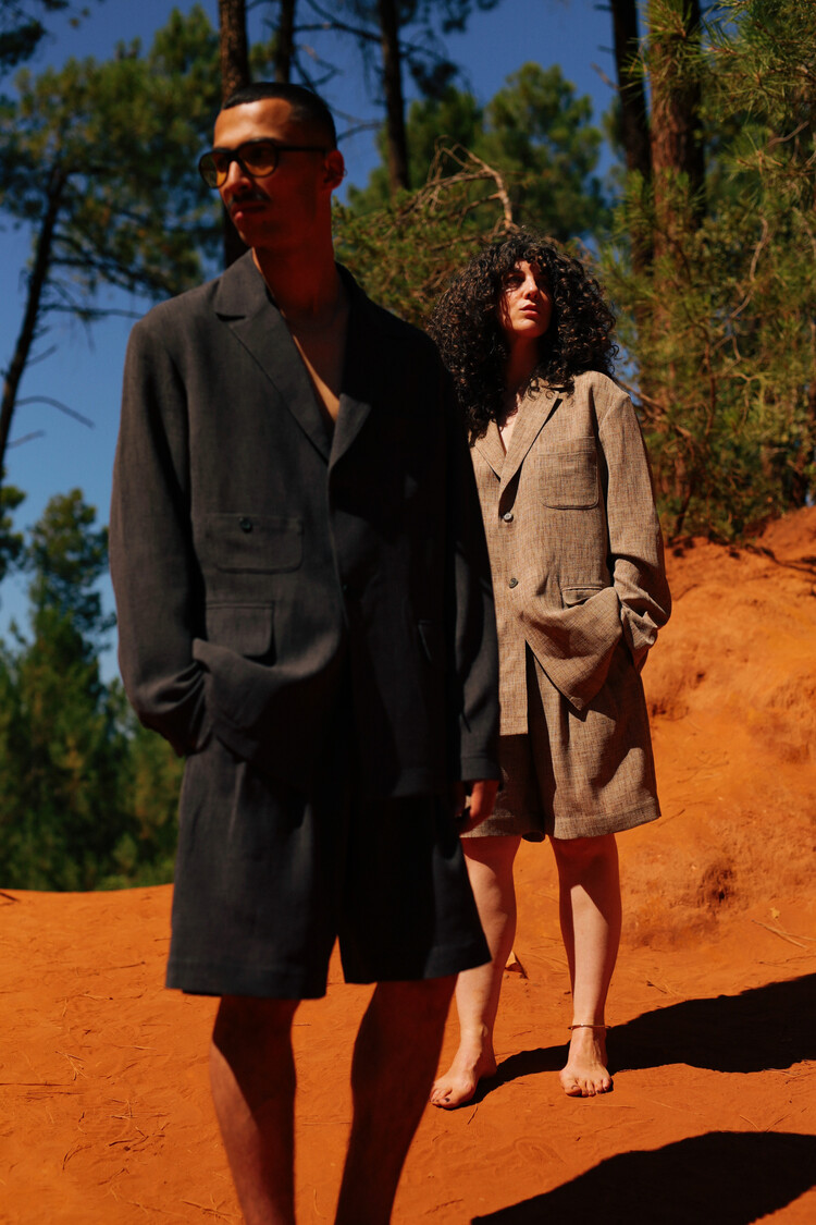 We really wanted to make a less formal jacket; therefore, we twisted all the typical detail that you can usually find on a tailored jacket, to be the perfect jacket to wear at a luxurious dinner during summer but staying fresh, class, and comfortable at the same time.