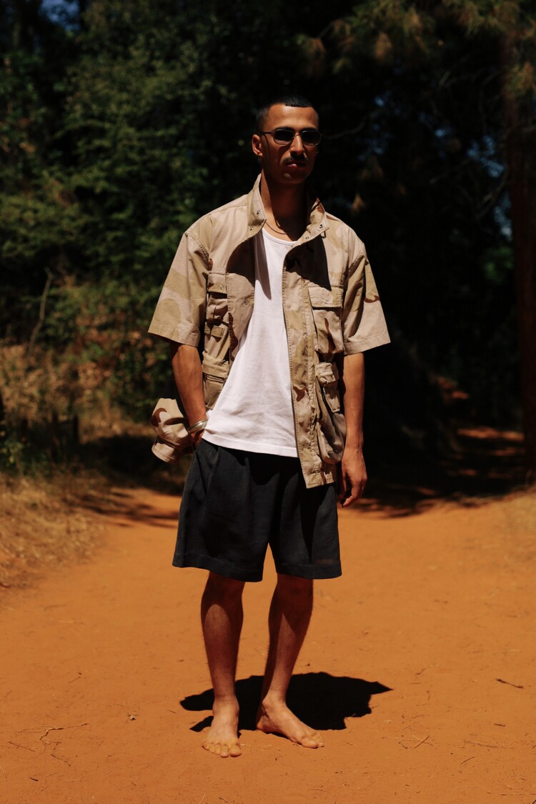 The "WADI WIDE SHORTS," which is the set-up short of the” RAQI CASUAL JACKET, is based on a relaxed silhouette and cool short pattern fit. As its name says, “WADI”, which means valley in Arabic, you can observe that the fabric used, a premium Japanese VANCET' POLYESTER POPLIN, has a rich surface and dry touch,