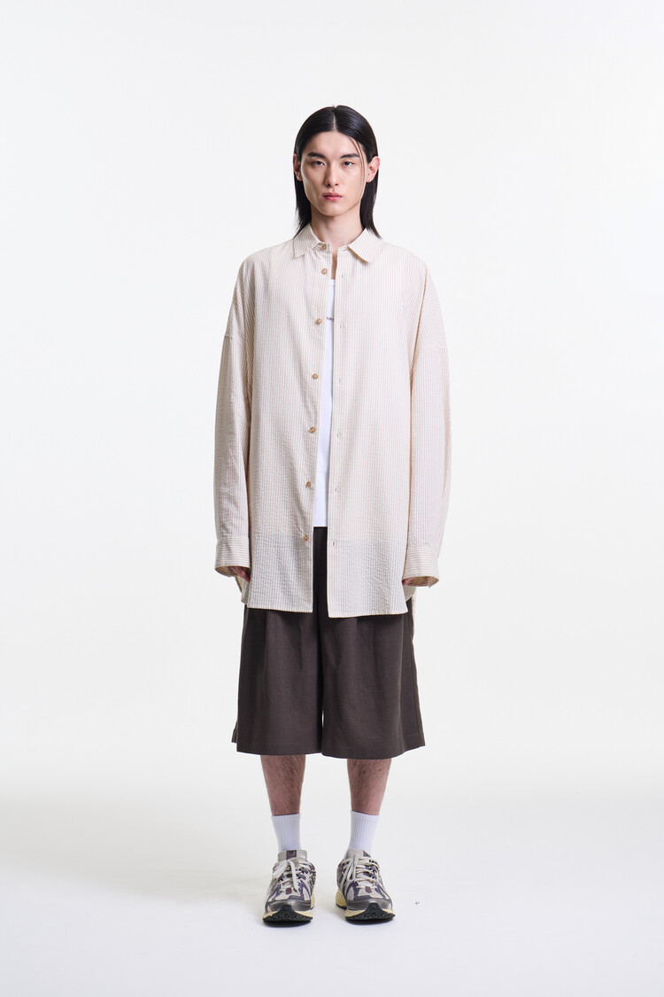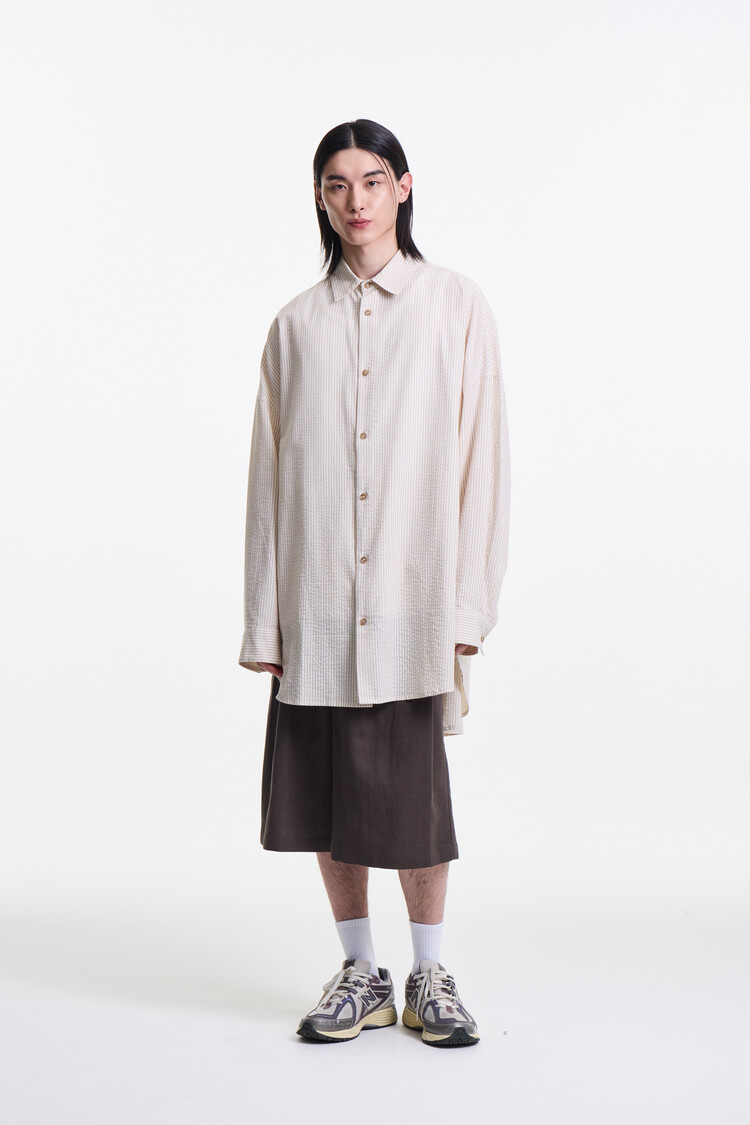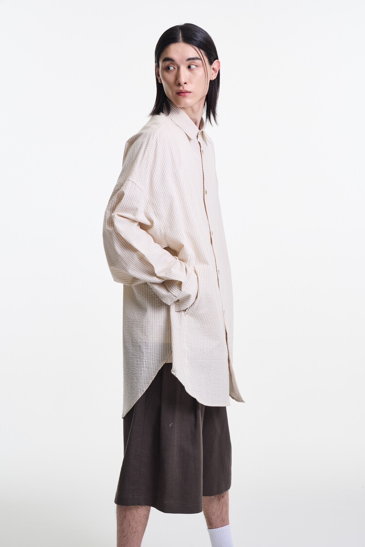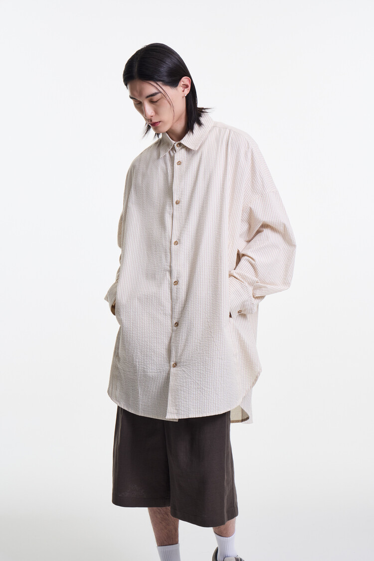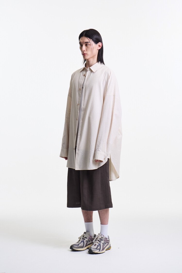 ECRU BEIGE PREMIUM CLASSIC SEERSUCKER STRIPE OVER SHIRTS