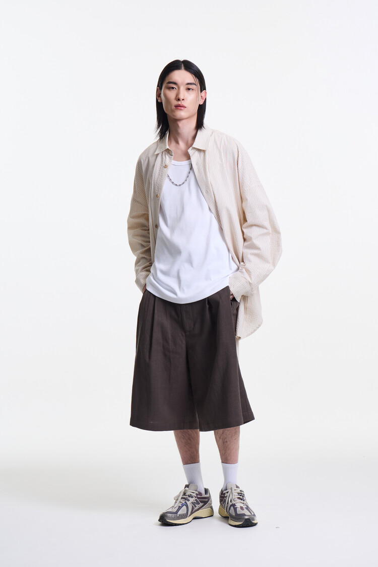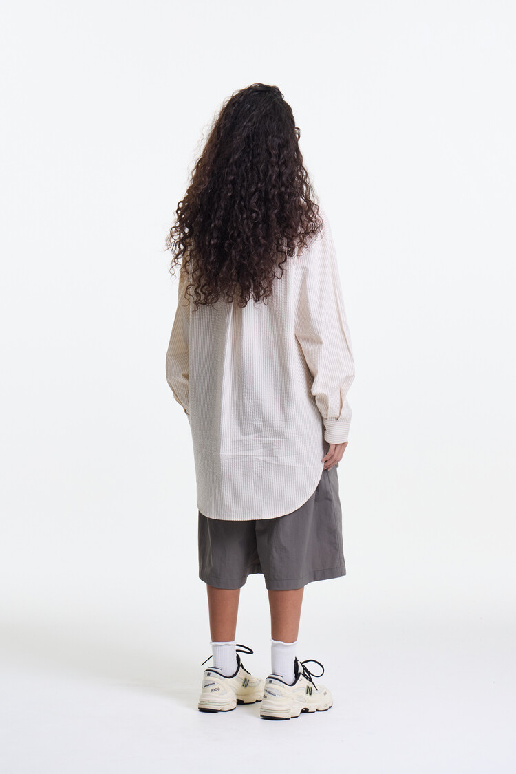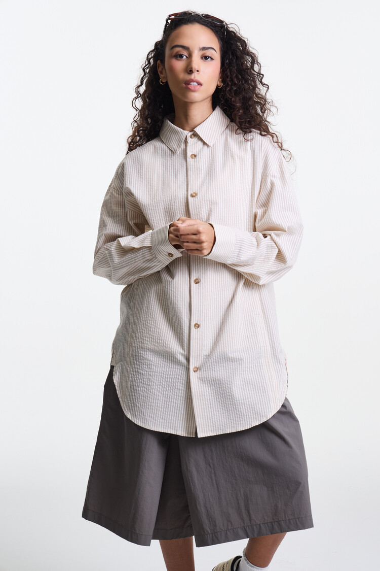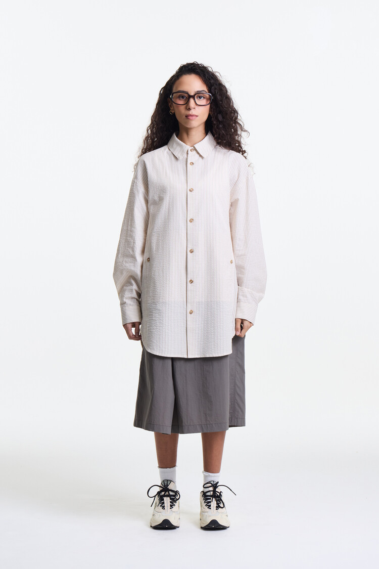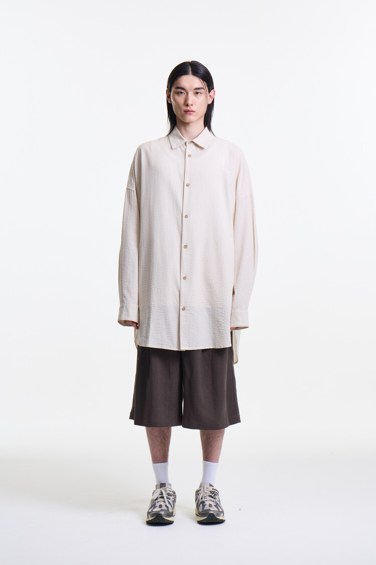 ECRU BEIGE PREMIUM CLASSIC SEERSUCKER STRIPE OVER SHIRTS