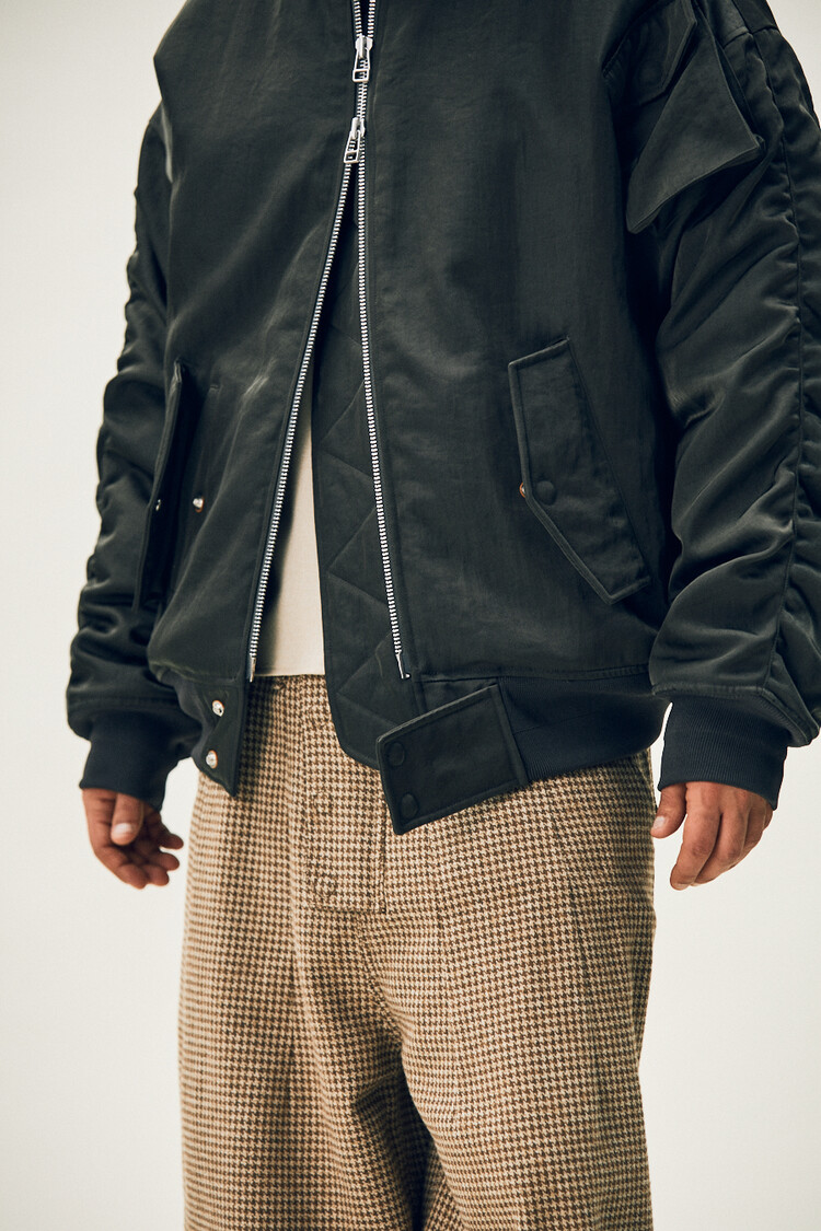 견고함을 기반으로 가장 보편적인 움직임과 편의성에 불편함이 없도록 집중한 제품인만큼 낙낙한 사이즈와 벨룬 형태의 실루엣으로 센시티브한 스타일링에 용이하고, 큼지막한 플랩형태의 지퍼 플라이가 아이코닉한 디테일 포인트로 자리하고 있으며,사이드 슬릿포켓과 뒤편에 위치한 와이드 아웃패치 포켓, 우측 허벅지 하단에 위치한 선글라스 포켓은 안정된 수납을 충실히 보장하며 균형감 있는 벨런스를 보여줍니다.