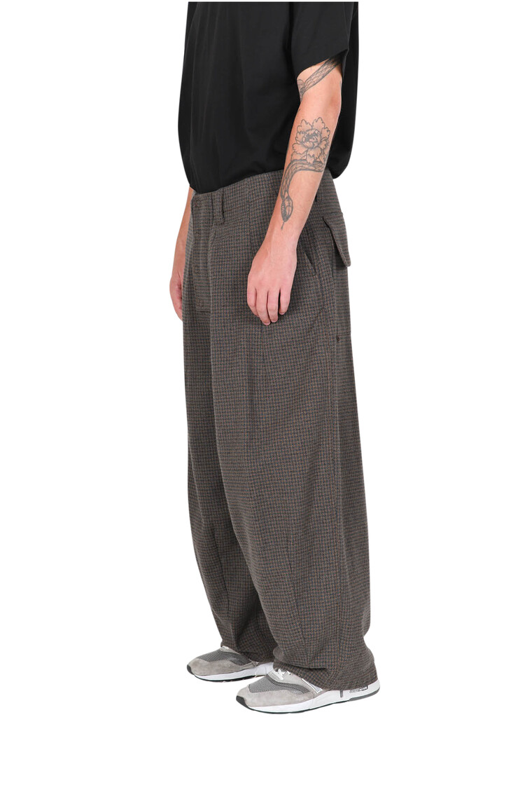 Based on 'TRIPLE LOW TWIST YARN' of 'KUWAMURA' as a base, the houndstooth pattern fabric, which is strong, subtle, and luxurious, suggests a warm and stable color feeling perfect for the F/W season.