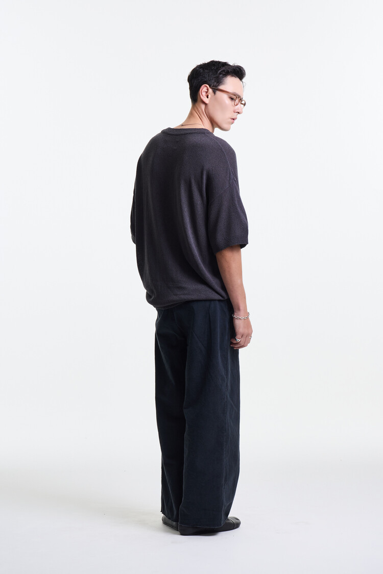CHARCOAL GREY PREMIUM COTTON CATION TWIST WIDE PANTS