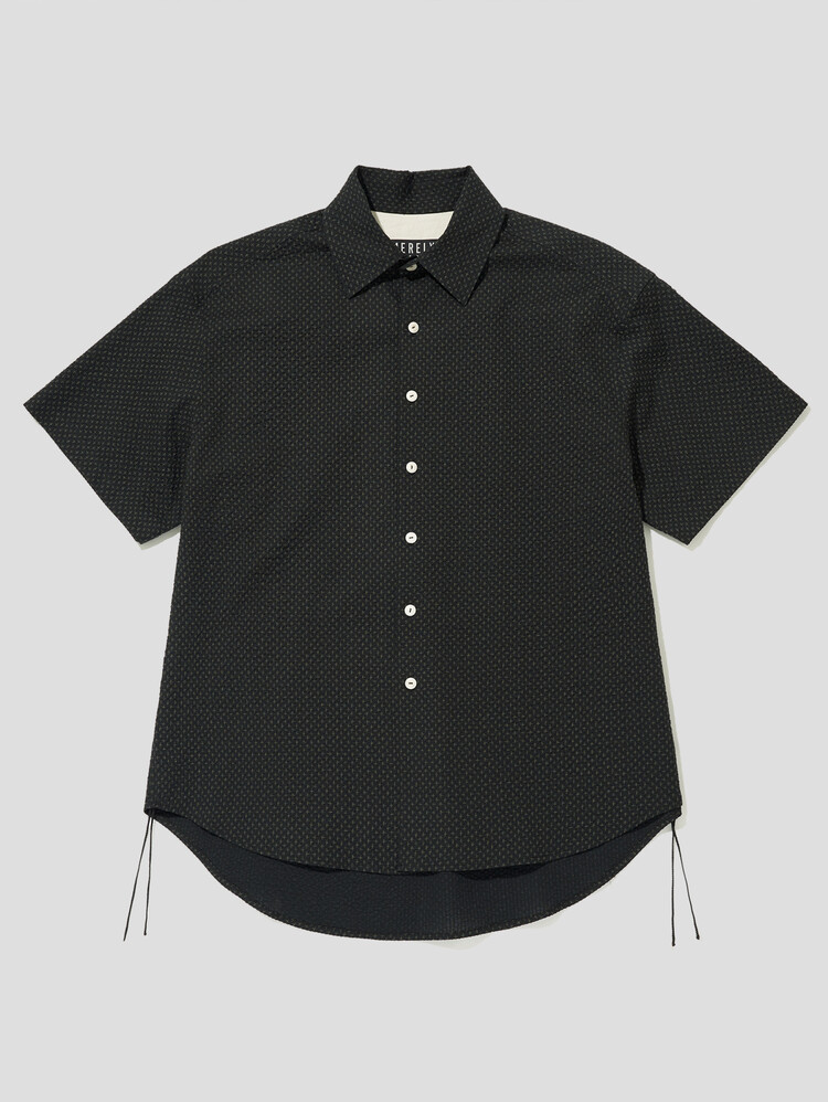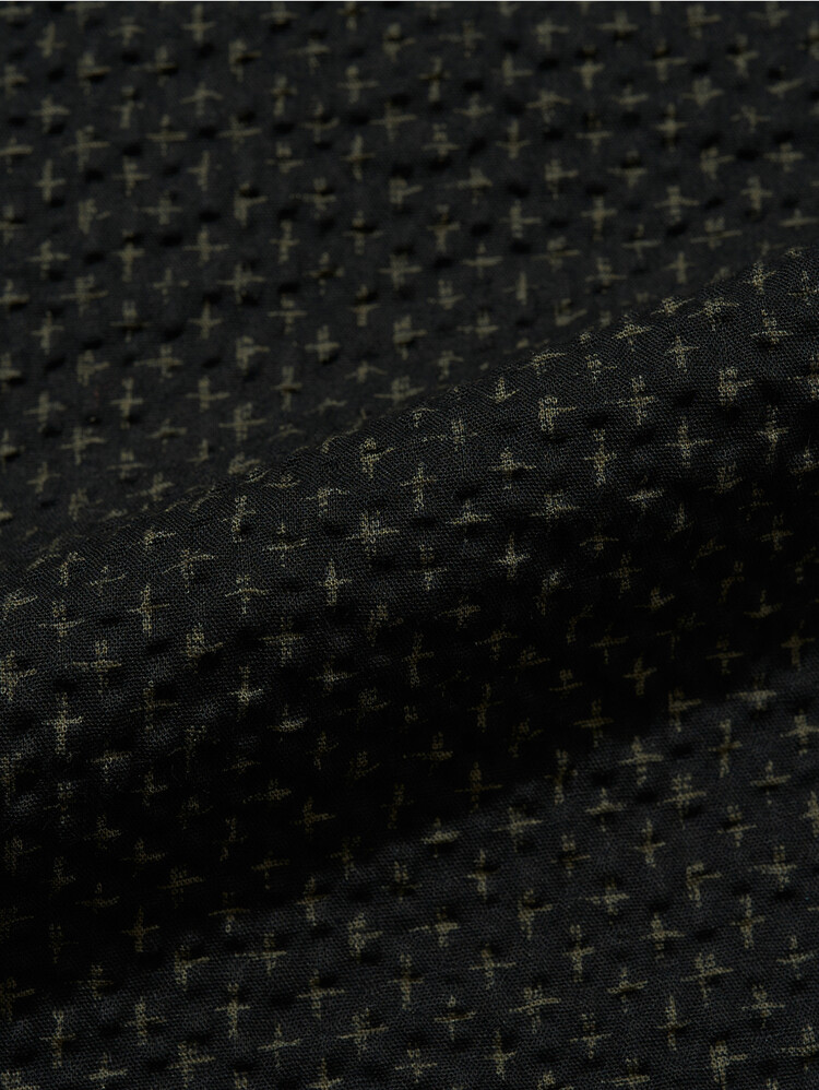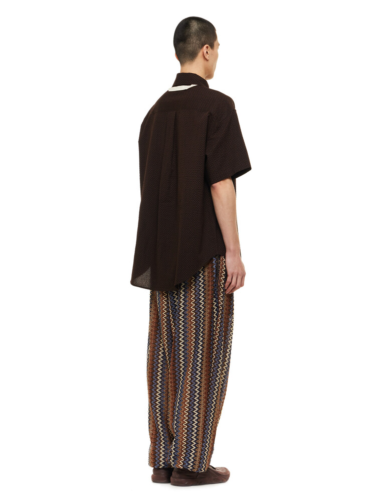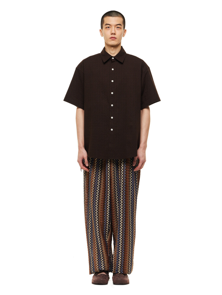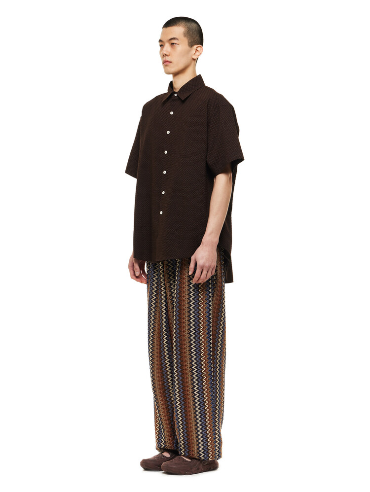 HICKORY BROWN SASHIKO PRINTED OVERSIZED SHORT SLEEVE SHIRT