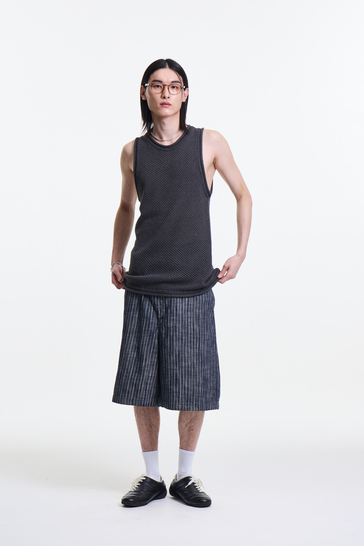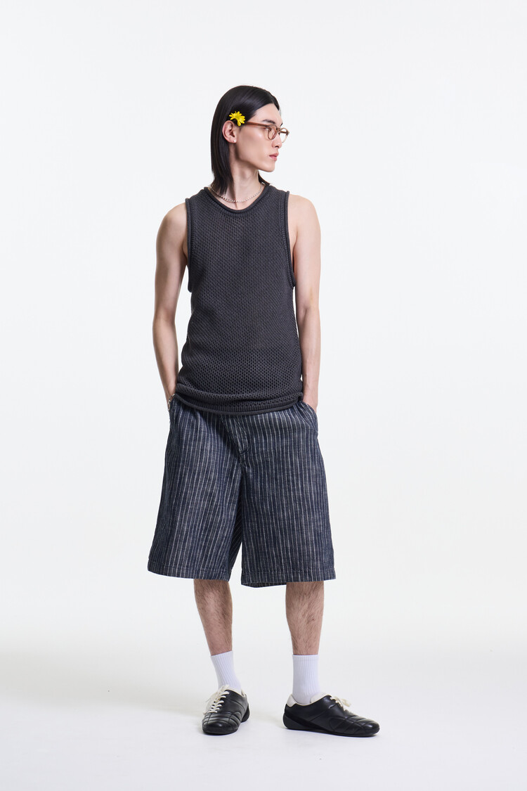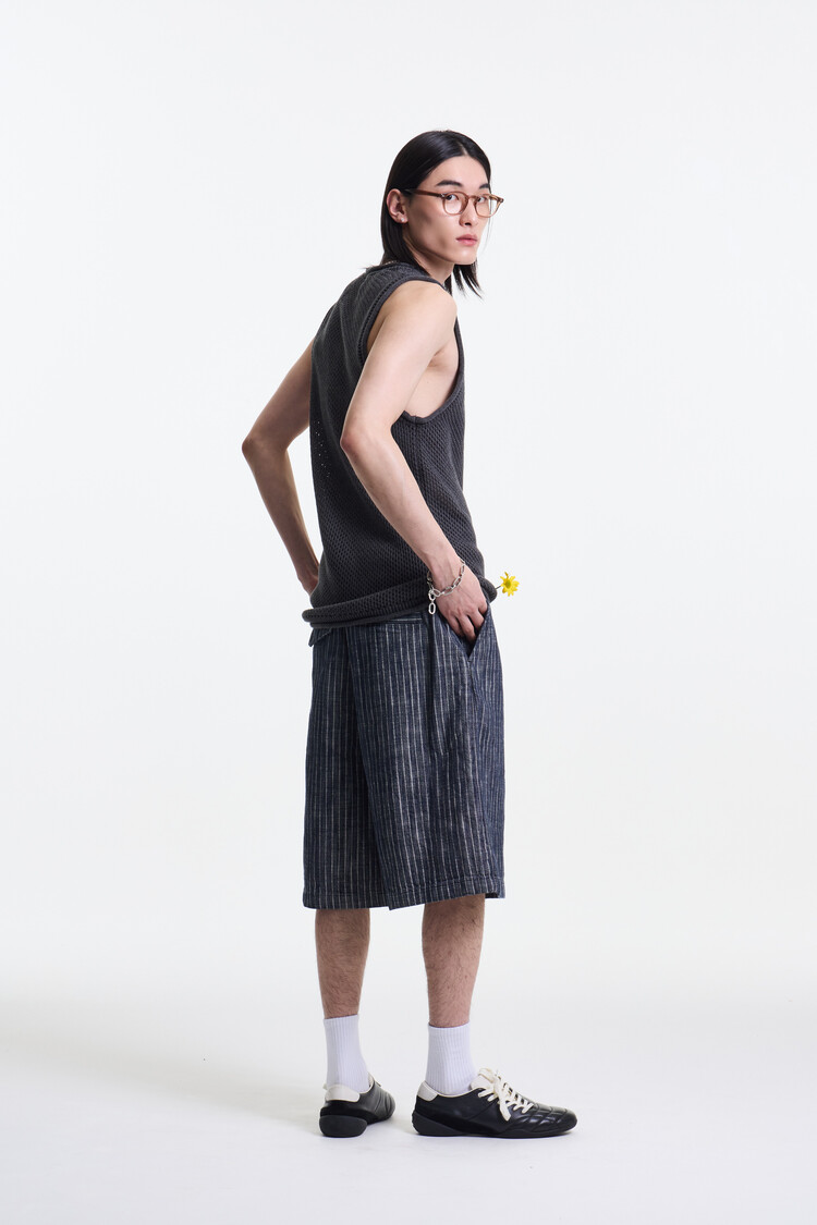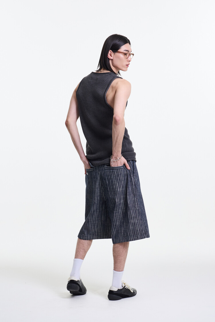 INDIGO NAVY PREMIUM NON-FADED DENIM TWIST WIDE SHORTS