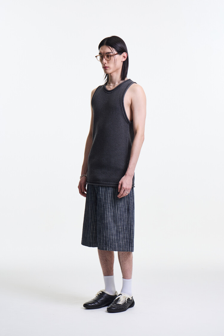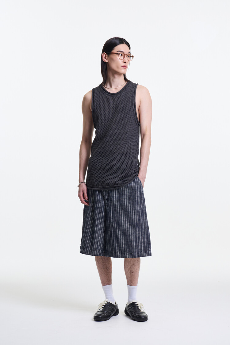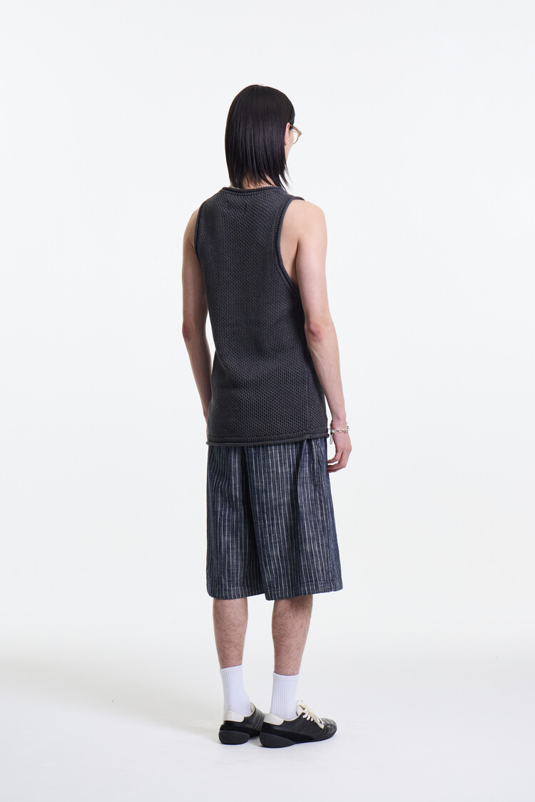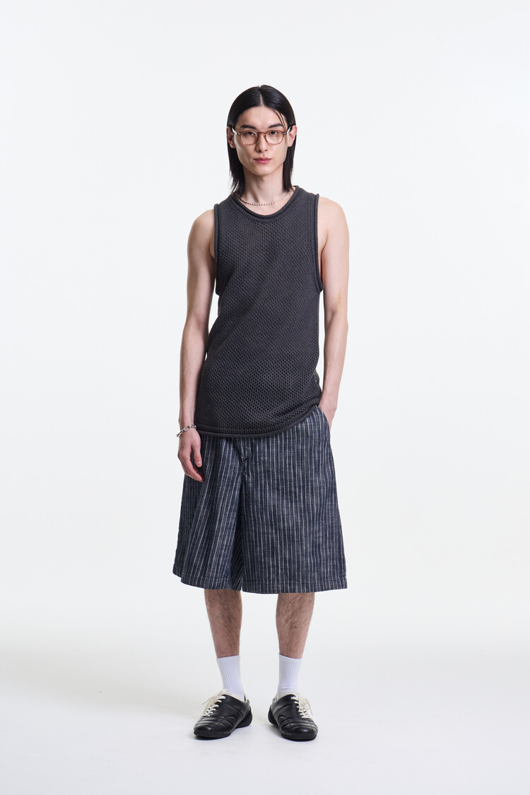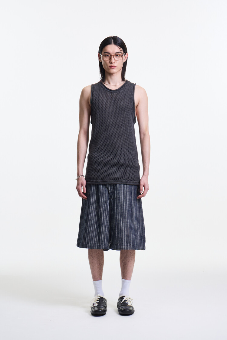 INDIGO NAVY PREMIUM NON-FADED DENIM TWIST WIDE SHORTS