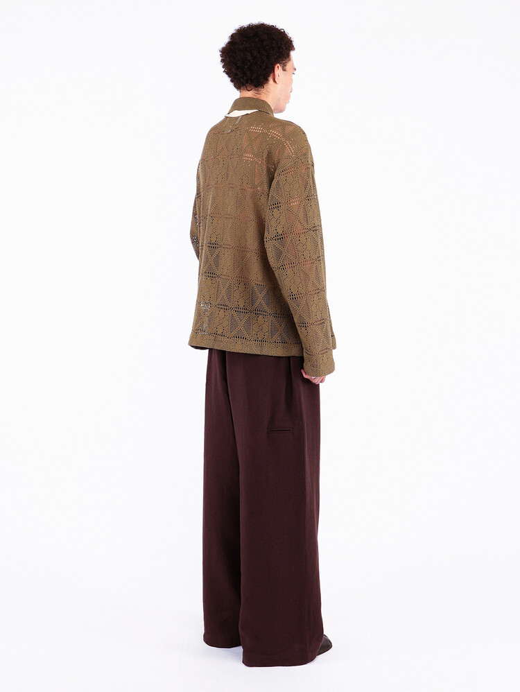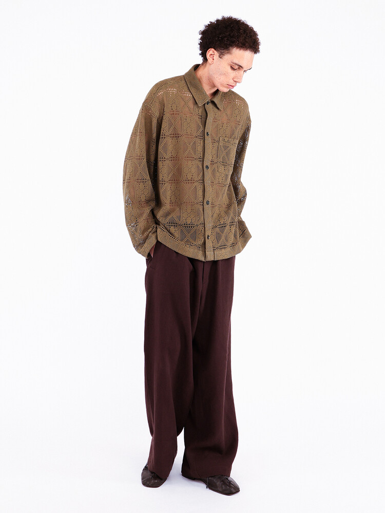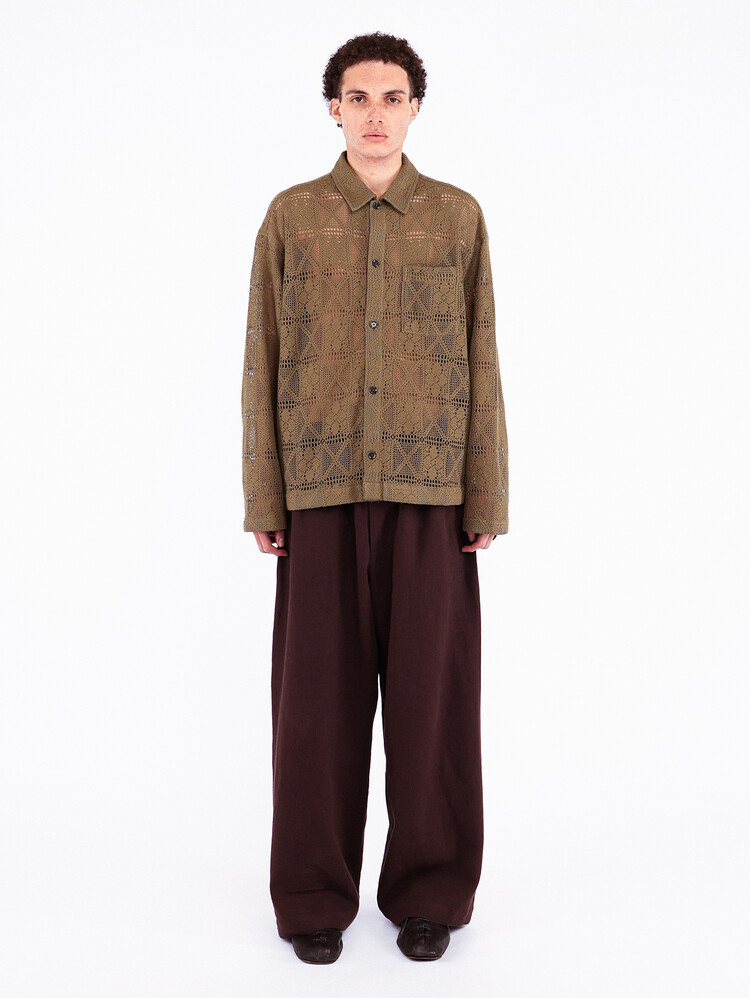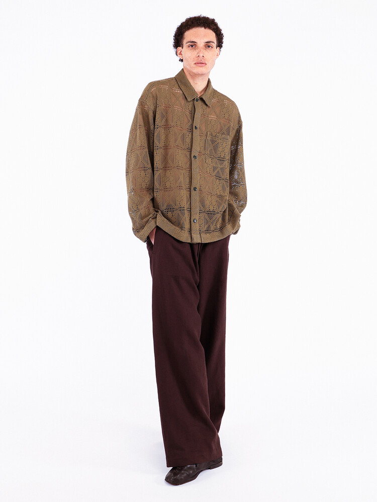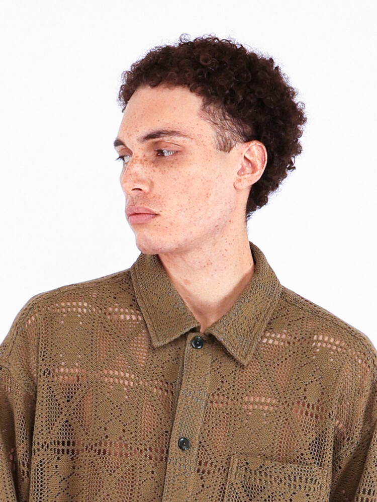 KHAKI MERELY FLOWER KNITTING LAZY OVER SHIRKET