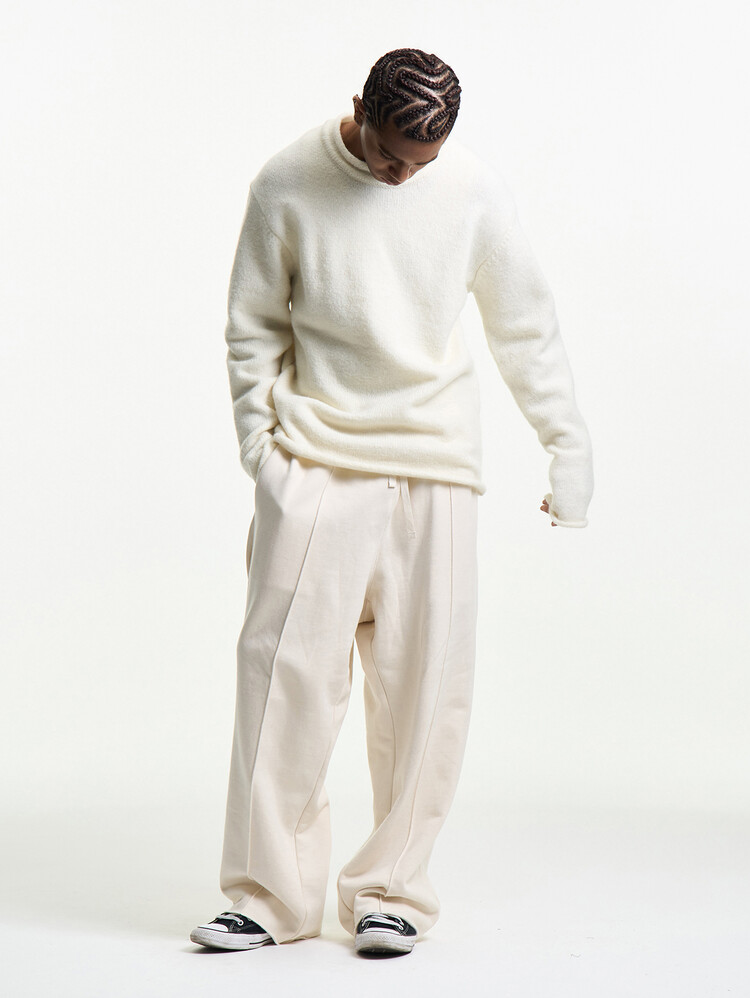 COSMIC LATTE MERELY PREMIUM PINTUCK JERSEY WIDE PANTS
