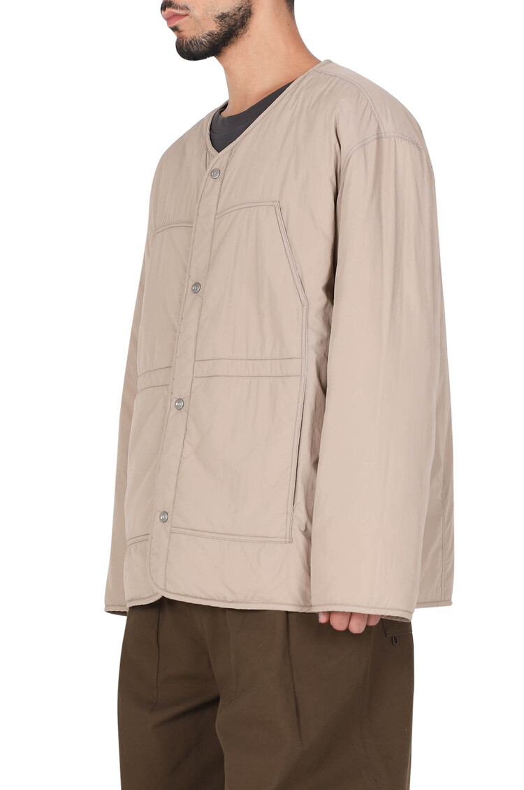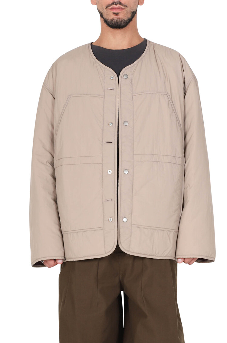 Using washable nylon fabric from Japan 'MASUDA' and 4 oz thick 3M THINSULATE lining, the diamond-shaped quilting is embroidered to maximize the inner warmth offered by the clothing.