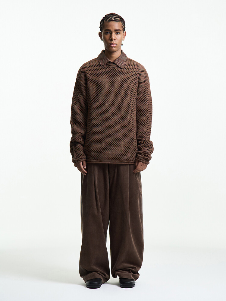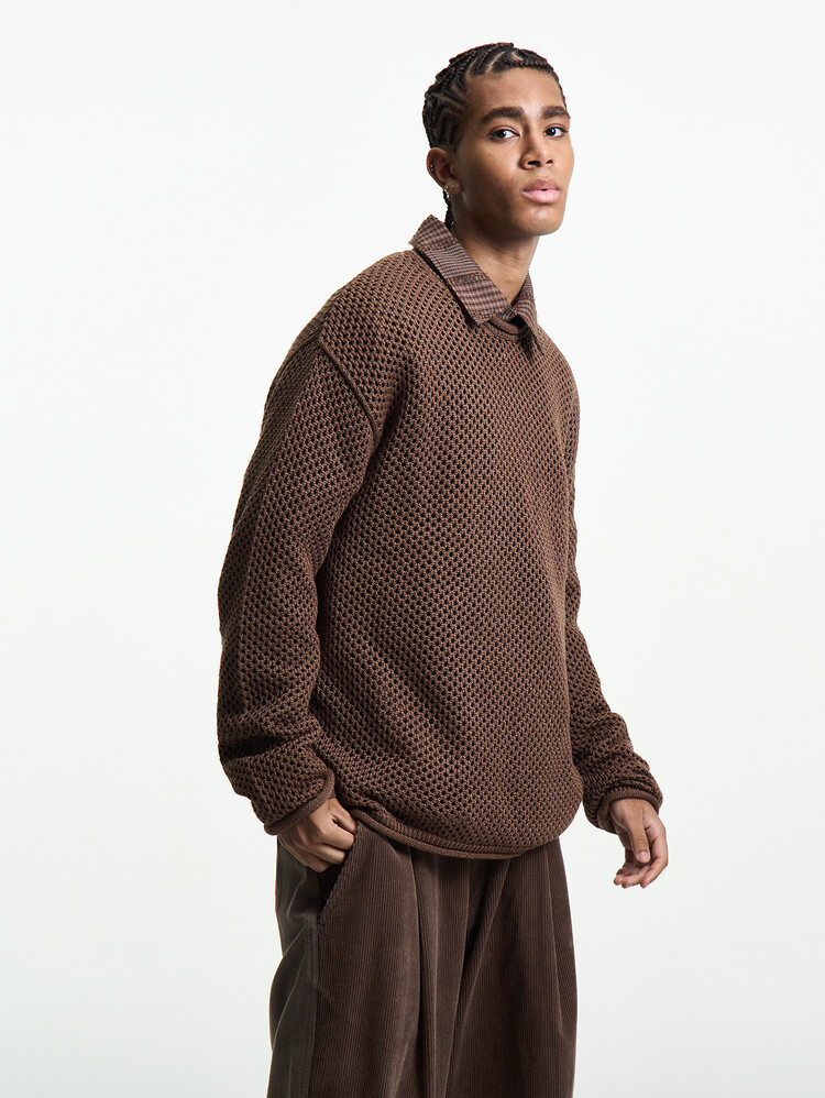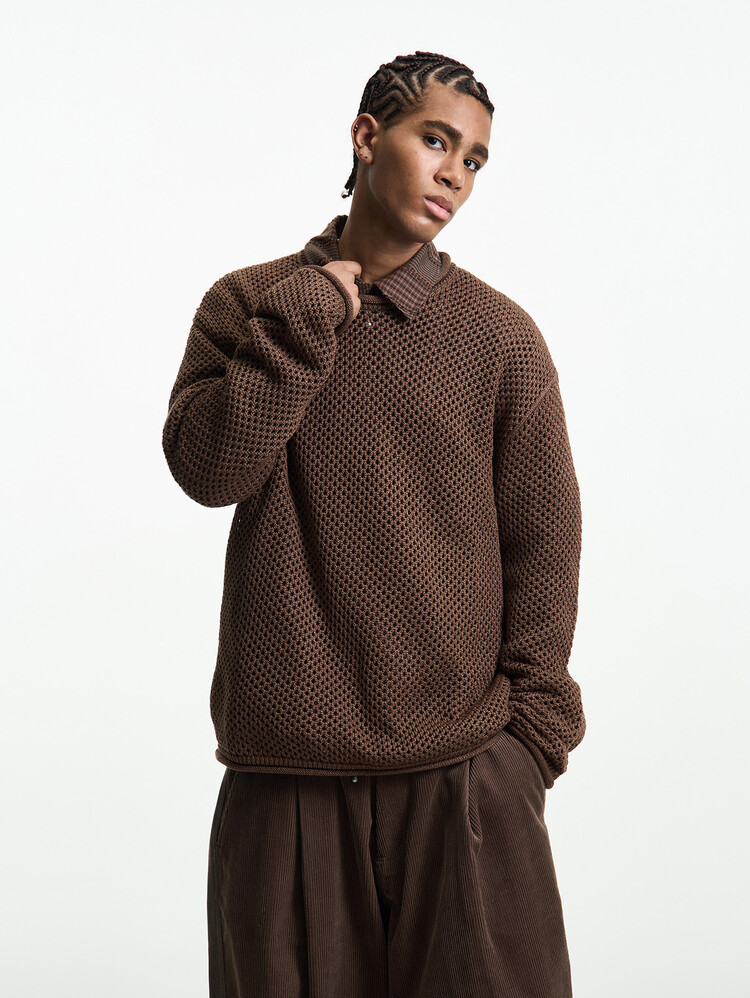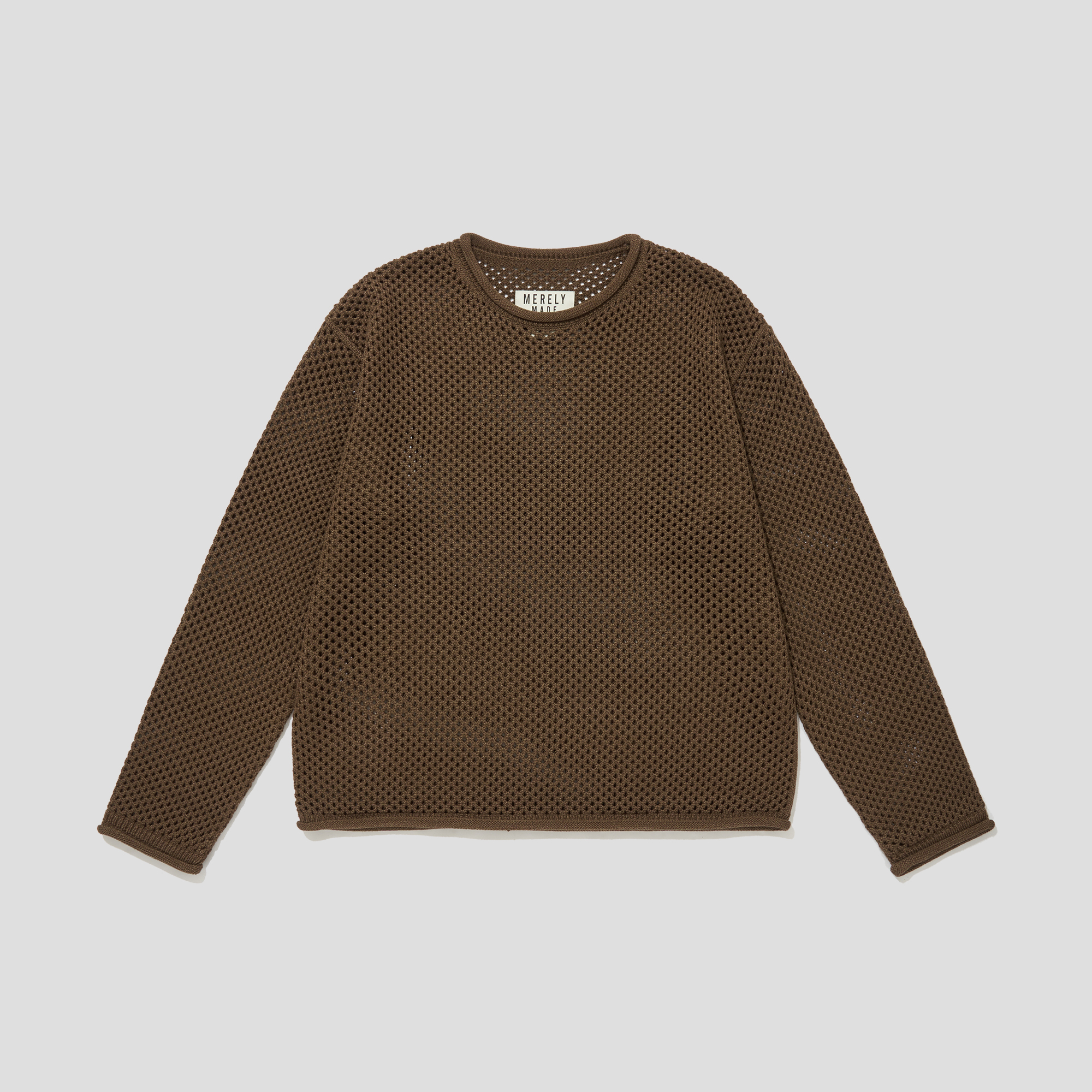 MELANGE BROWN MERELY PREMIUM MELANGE NETTING SWEATER
