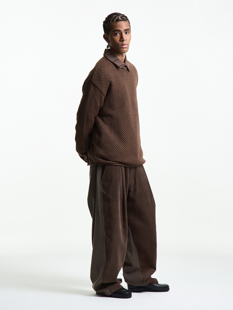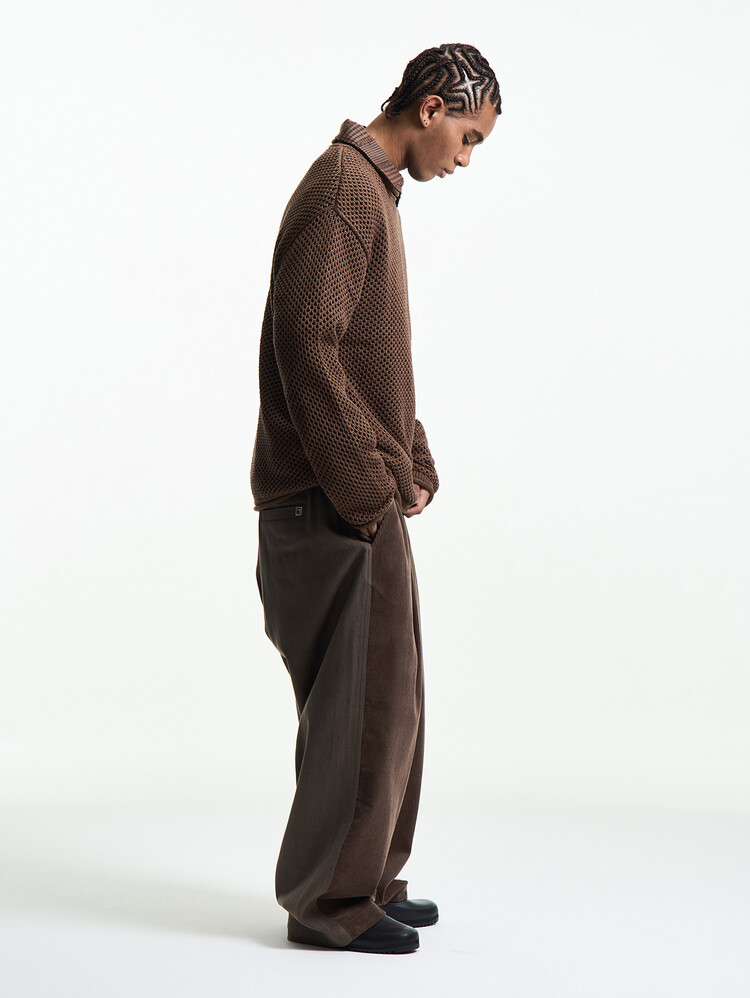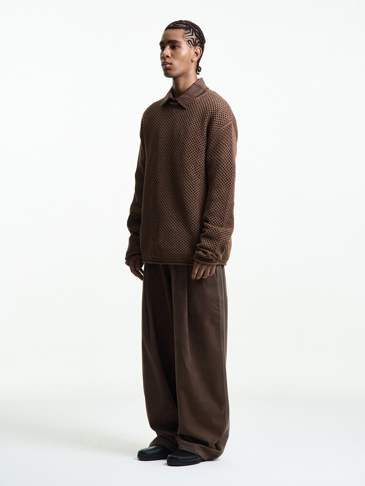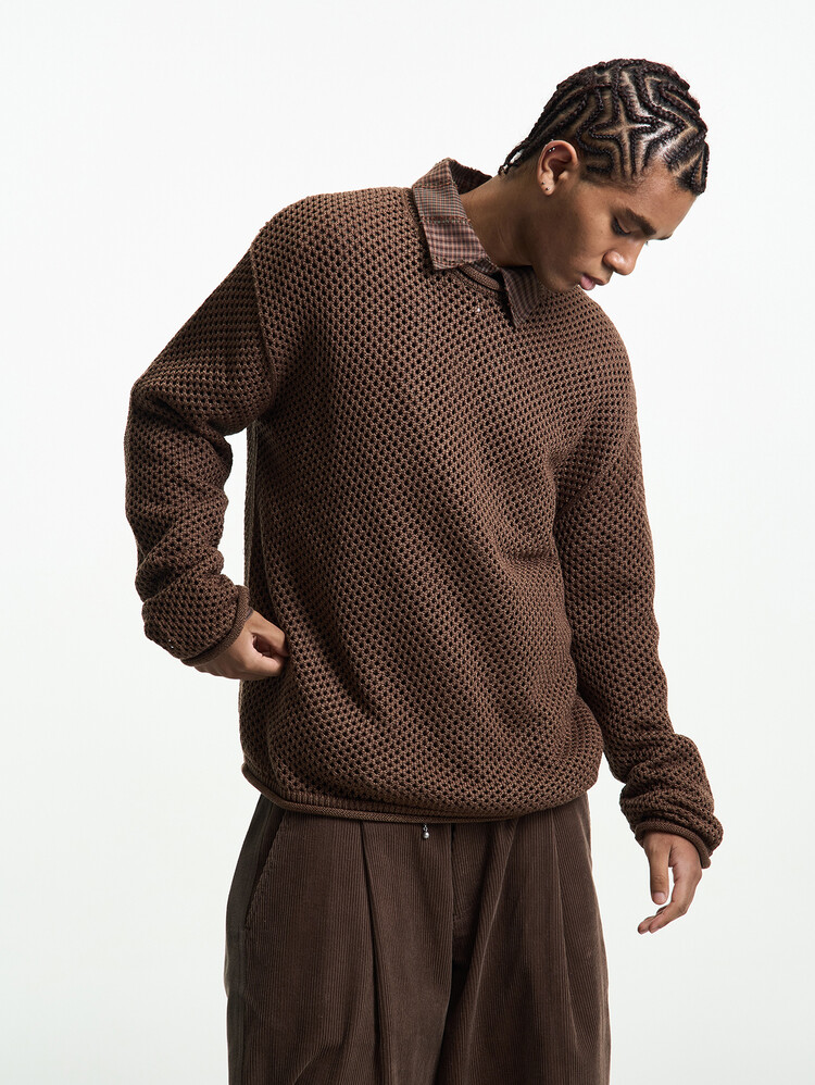 MELANGE BROWN MERELY PREMIUM MELANGE NETTING SWEATER