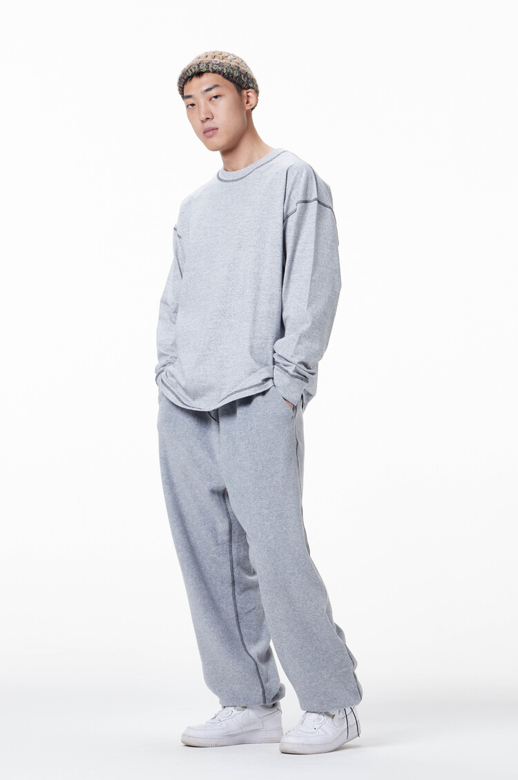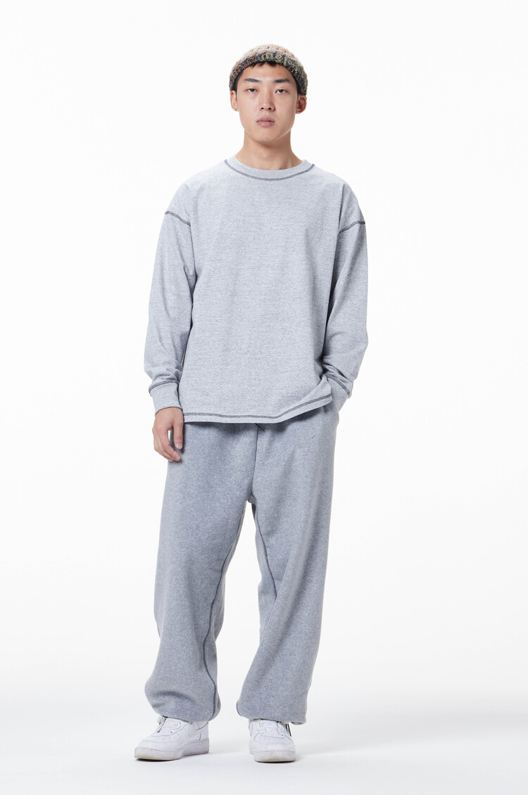This is the 'MERELY CASUAL LONG SLEEVE T-SHIRTS' with a warm melange color 16'S compact washable single fabric and an impressive point color Gaerupa sewing detail. The simple but generous size and comfortable silhouette provide a stable fit. The initial logo print in TONE ON TONE & point color is located in a minimalist form at the bottom of the back center. It was released in a total of 3 colors: WHITE MELANGE, GRAY MELANGE, and BLACK.