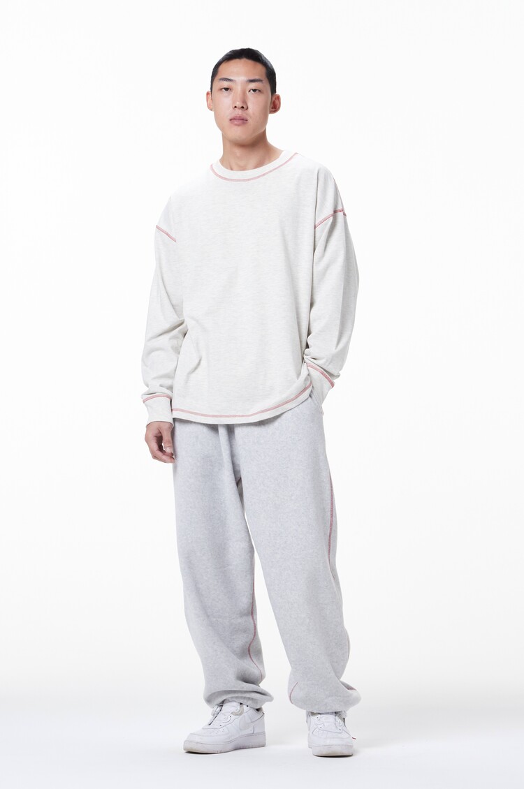 따뜻한 기운의 멜란지컬러 16'S 콤팩트 워셔블 싱글원단과 포인트 컬러 가에루빠 봉제 디테일이 인상적인 'MERELY CASUAL LONG SLEEVE T-SHIRTS' 입니다. 심플하지만 여유로운 사이즈와 편안한 실루엣으로 안정적인 착용감을 제공합니다. 뒤 중심 하단에 TONE ON TONE & 포인트 컬러의 이니셜 로고 프린트가 미니멀한 형태로 위치하고 있습니다. WHITE MELANGE, GREY MELANGE, BLACK컬러까지 총 3COLOR WAY로 출시되었습니다.