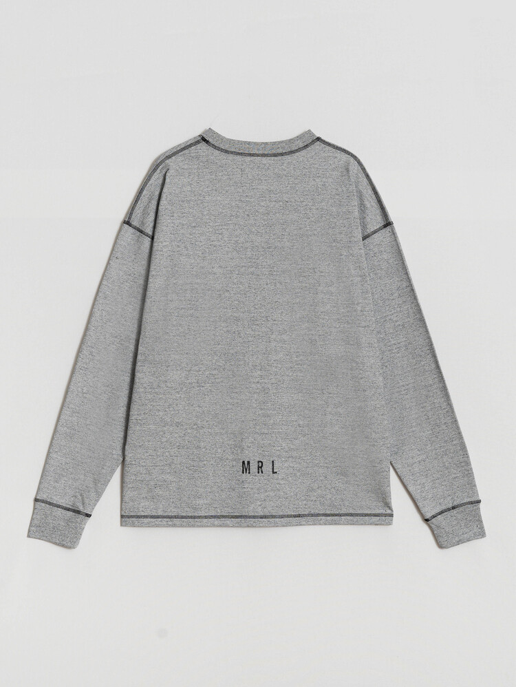 Introducing the 'MERELY CASUAL LONG SLEEVE T-SHIRTS' - a perfect addition to your wardrobe. These long-sleeve shirts come in a cozy melange color, crafted from 16'S compact washable single fabric, and feature a contrasting three-needle stitch sewing detail. With a straight oversized design, these shirts offer a wide and comfortable fit. The initial logo is printed tone-on-tone in a contrasting color, elegantly placed at the lower back center in a minimalist style. You can choose from a selection of three colors: White Melange, Gray Melange, and Black.