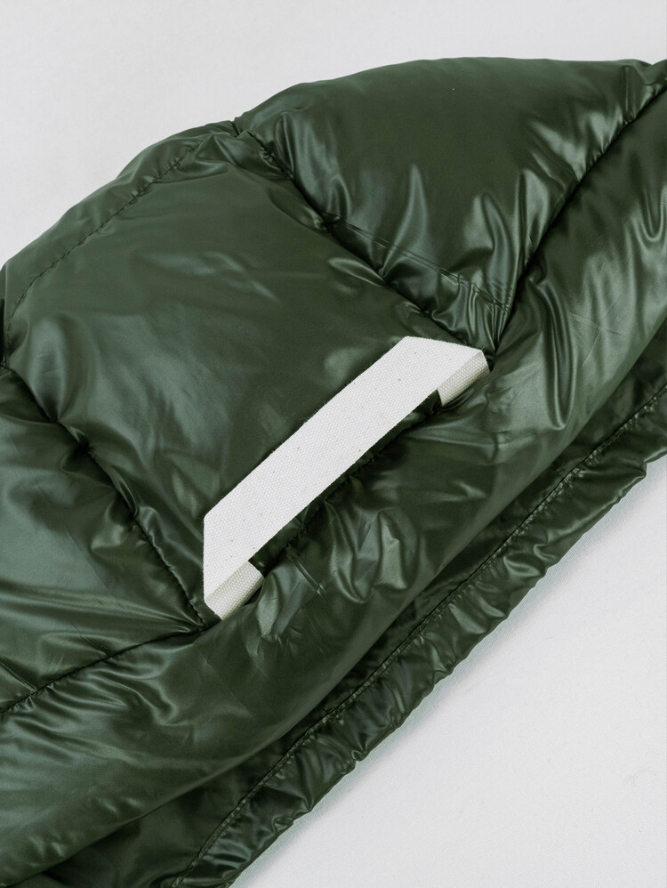 EN: Introducing the 'MERELY GOOSE-DOWN HOOD SCARF,' the inaugural product from our new clothing accessory line, making its debut in the 23FW season. Crafted from Japan's 'MASUDA' 'NANO SOLID' nylon fabric, known for its sheen, and filled with premium 80:20 goose down, this accessory delivers a remarkable combination of lightweight comfort and voluminous warmth. Perfectly suited for swiftly shifting weather conditions. One of its unique features is the scarf detail, which can be styled into various knot forms, allowing for personalized and eye-catching statements.