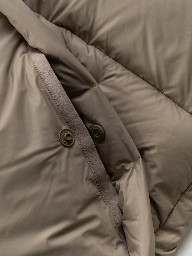 21FW 시즌에 첫선을 보인 이후로 3세대로 진화를 거쳐 켄버스 트랜치 코트와 다운베스트의 투피스 형태로 출시된 'MERELY PREMIUM GURKHA DUAL-MODE COAT' 입니다. 일본 'SHIBAYA'사의 도톰한 빈티지 캔버스 원단을 베이스로한 트렌치 코트와 80:20 프리미엄 구스다운 충전재를 적용한 다운 베스트를 디터쳐블의 형태로 디자인 되었으며, 쌀쌀한 간절기부터 혹한의 겨울까지 개개인의 취향과 스타일링에 맞춰 다양한 형태로 운용할수 있도록 구현되었습니다. 와이드하면서도 웅장한 실루엣의 트렌치는 미니멀한 웰티드 사이드 포켓 디자인과 하단중심에 길게 펼쳐지는 폴딩 형태의 벤틸레이션 디테일로 디자인적 상징성이 잘 표현되어 있고, 아웃 가디건 형태의 다운 베스트는 FILL POWER 600정도의 볼륨감과 다양한 수납기능, YKK사의 나일론 8호 2WAY 프론트 지퍼를 채택하여 실용성과 편리성을 갖추고 있습니다.