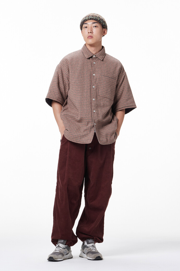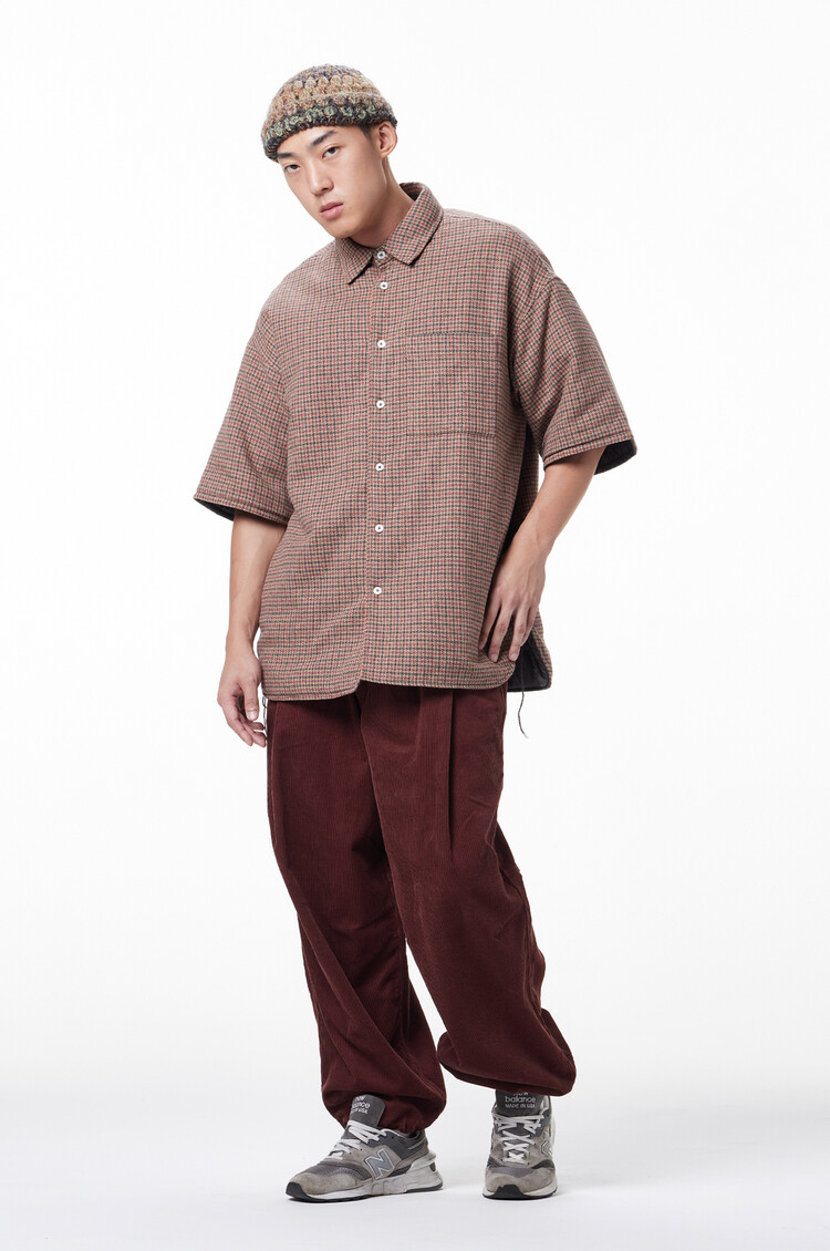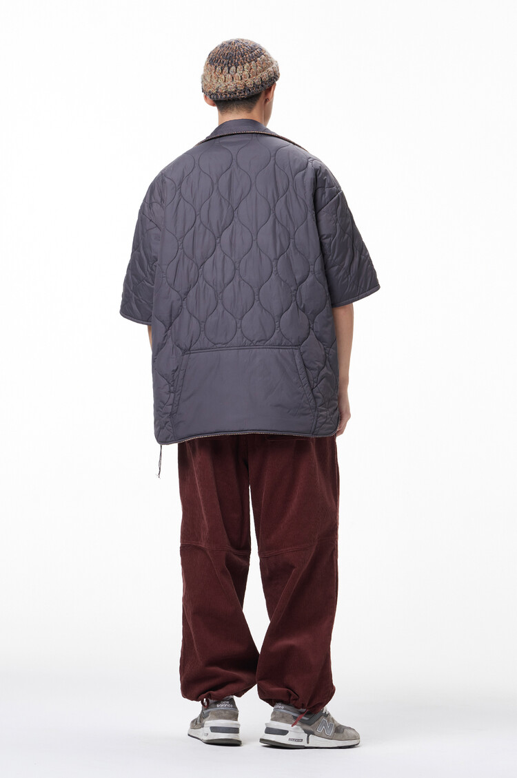 EN: This is the latest iteration of our 'MERELY PREMIUM REVERSIBLE PADDED SHIRTS,' now in its 5th generation after continuous upgrades since the 19FW season. For the outer fabric, we've chosen the 'KUWAMURASA' tweed cotton, featuring a timeless check pattern. The inner lining, made from the 'MASUDA' soft-touch fabric, has undergone a 'dust-proof' post-processing treatment to enhance its functionality by preventing static electricity buildup when worn. This shirt is also designed with a unique 2FACE reversible feature, showcasing different styles on each side. It offers a total of four storage pockets, including left and right side slit pockets, an upper-left chest pocket, and a kangaroo pocket on the inside back and bottom. With its short-sleeved design, this product is perfect for transitioning between seasons and for use as a versatile layering piece.
