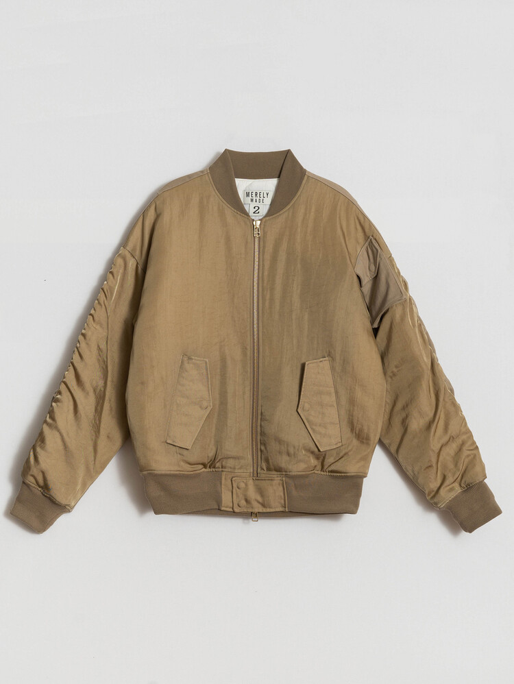 나일론 & 코튼 트윌원단의 상반된 소재를 MIX하여 2세대로 업데이트되며 출시된 'MERELY PREMIUM VINTAGE MA-1 JUMPER' 입니다. 일본 'KUWAMURA'사의 고급스러운 빈티지 헤비 나일론 트윌원단과 'MASUDA'사의 10'S 헤비 코튼트윌을 믹스하여 은은하면서도 고급스러운 소재의 이중성을 부각하였으며, 클래식한 MA-1의 형태 안에서 작지만 유니크한 기본 사양의 변화를 통해 디자인 요소에 재미를 부각한 제품입니다.