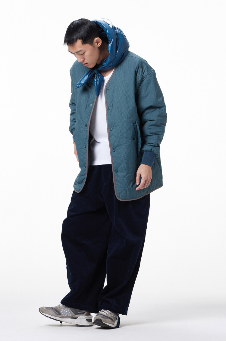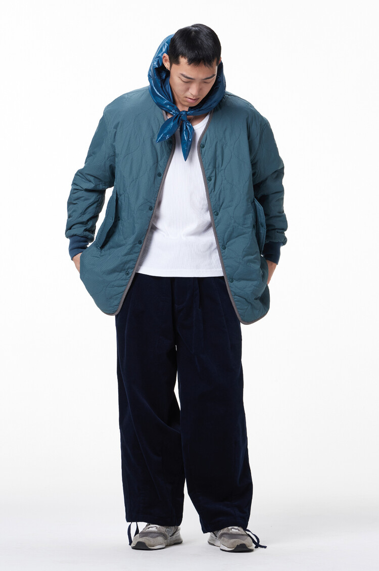 패딩 형태의 쟈켓으로 단독 출시된 'MERELY QUILTED LINER JACKET' 입니다. 일본 'MASUDA'사의 클래식한 나일론 립스탑 원단과 3M THINSULATE 충전재를 적용한 퀼팅원단이 채택되었으며, 힙선을 살짝 덮는 하프기장감과 뒤한단에 위치한 아치형 고정 벤틸레이션, 케쥬얼한 플랩포켓 디테일로 편리성과 실용성 및 아웃웨어로서의 디자인적 기능도 갖추고 있어 다양한 측면에서 활용도가 높은 제품입니다.
