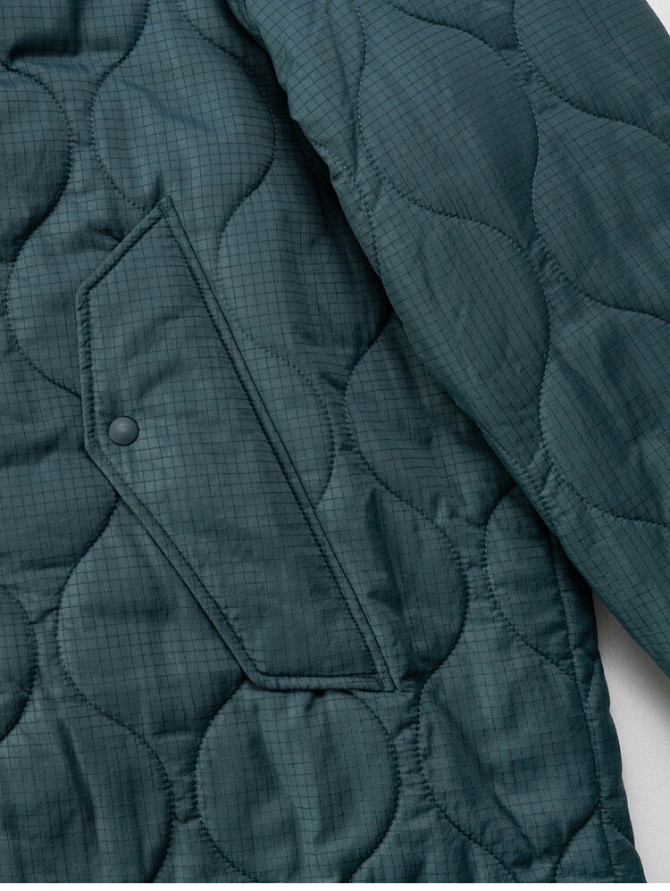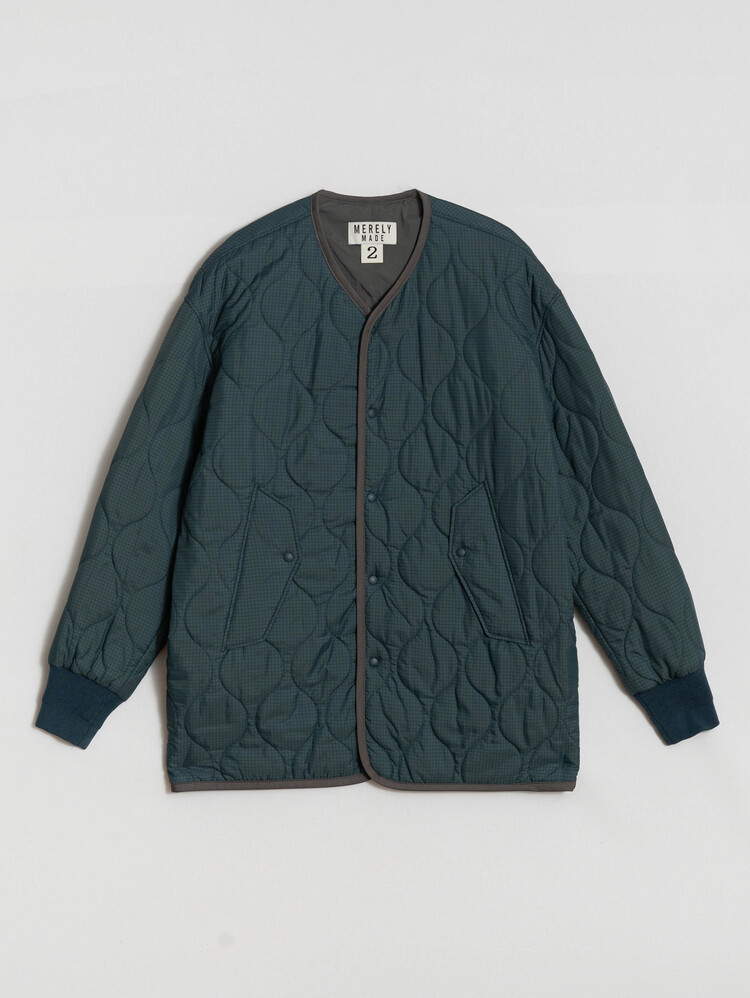 패딩 형태의 쟈켓으로 단독 출시된 'MERELY QUILTED LINER JACKET' 입니다. 일본 'MASUDA'사의 클래식한 나일론 립스탑 원단과 3M THINSULATE 충전재를 적용한 퀼팅원단이 채택되었으며, 힙선을 살짝 덮는 하프기장감과 뒤한단에 위치한 아치형 고정 벤틸레이션, 케쥬얼한 플랩포켓 디테일로 편리성과 실용성 및 아웃웨어로서의 디자인적 기능도 갖추고 있어 다양한 측면에서 활용도가 높은 제품입니다.