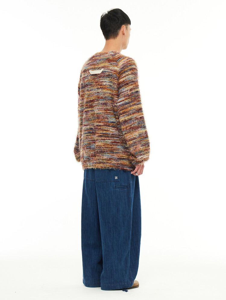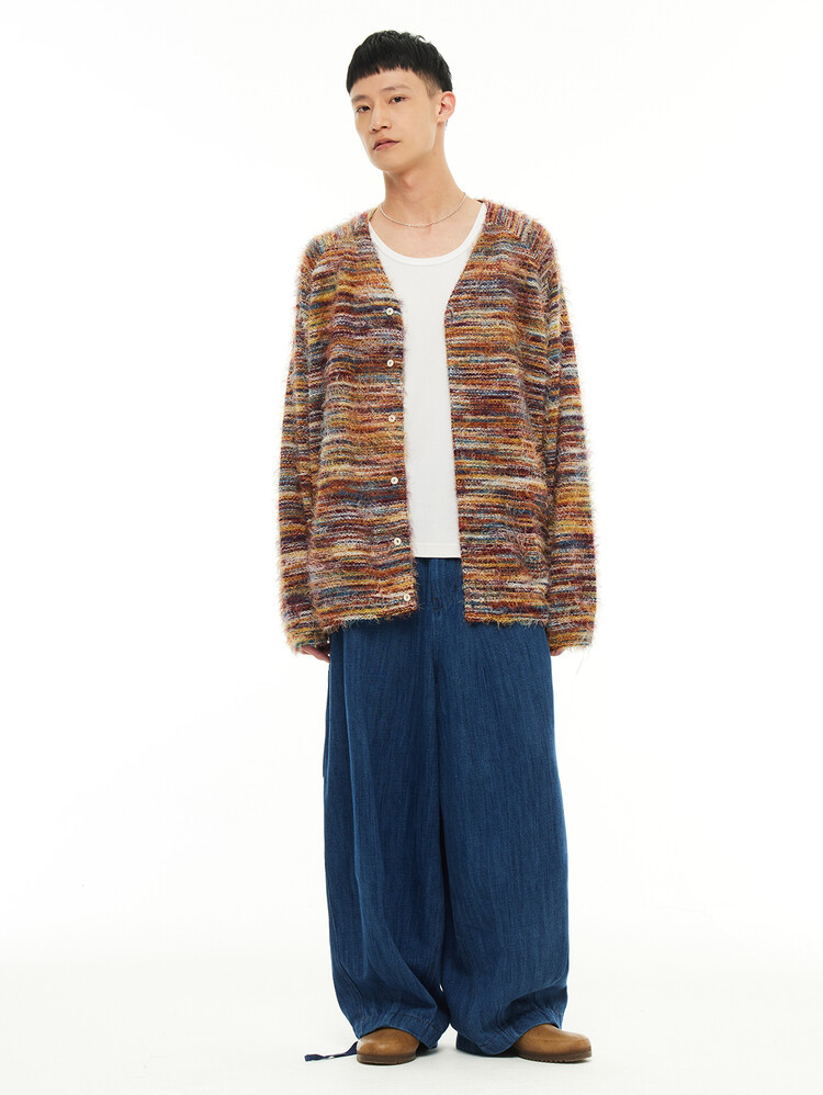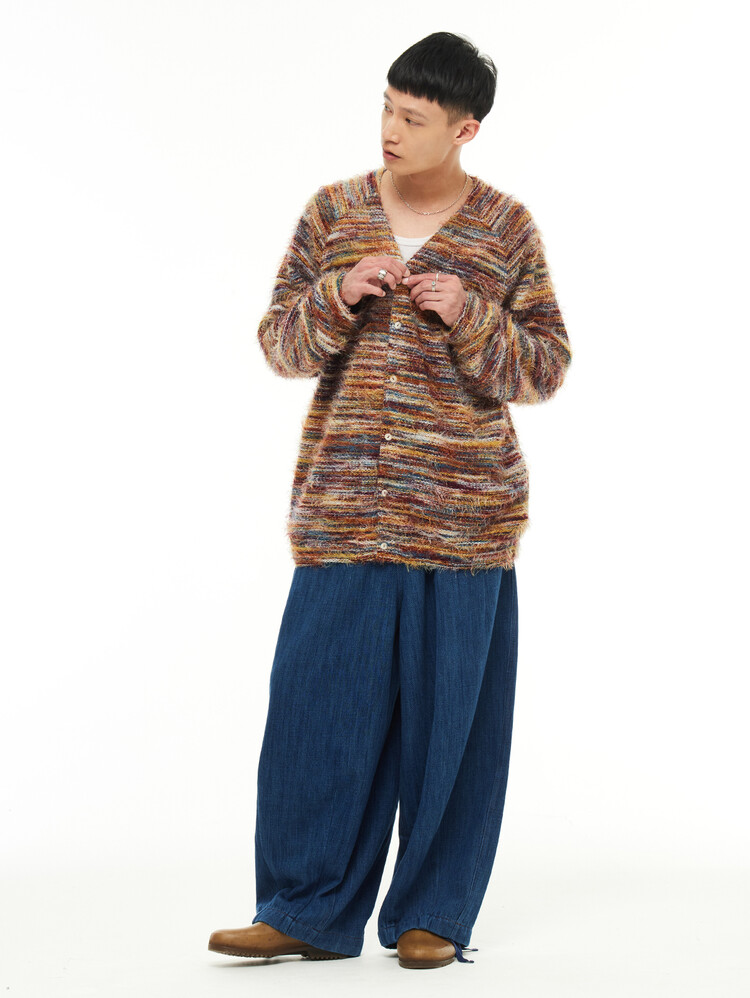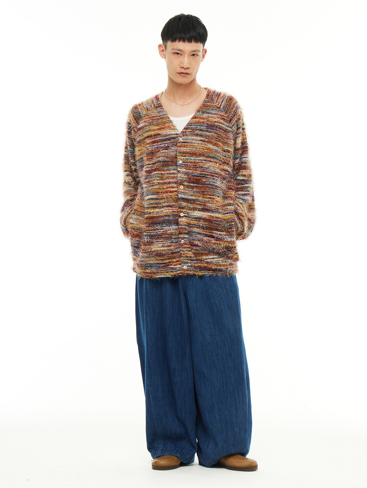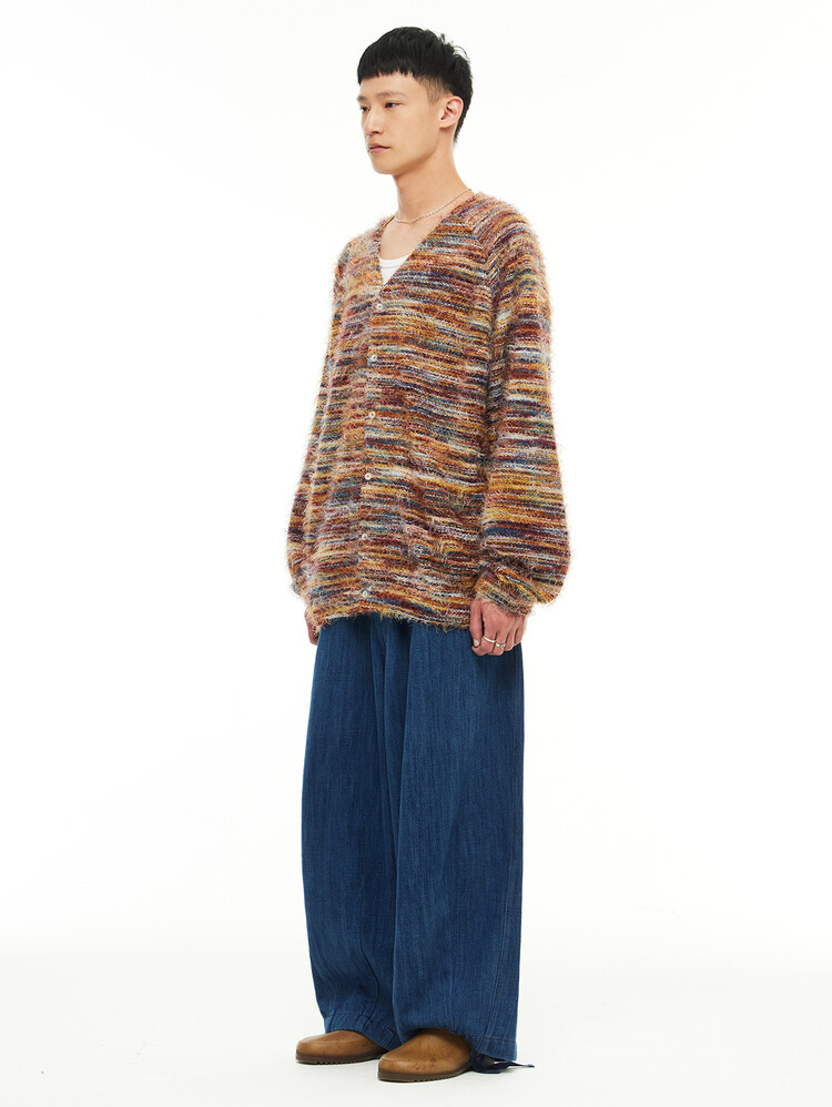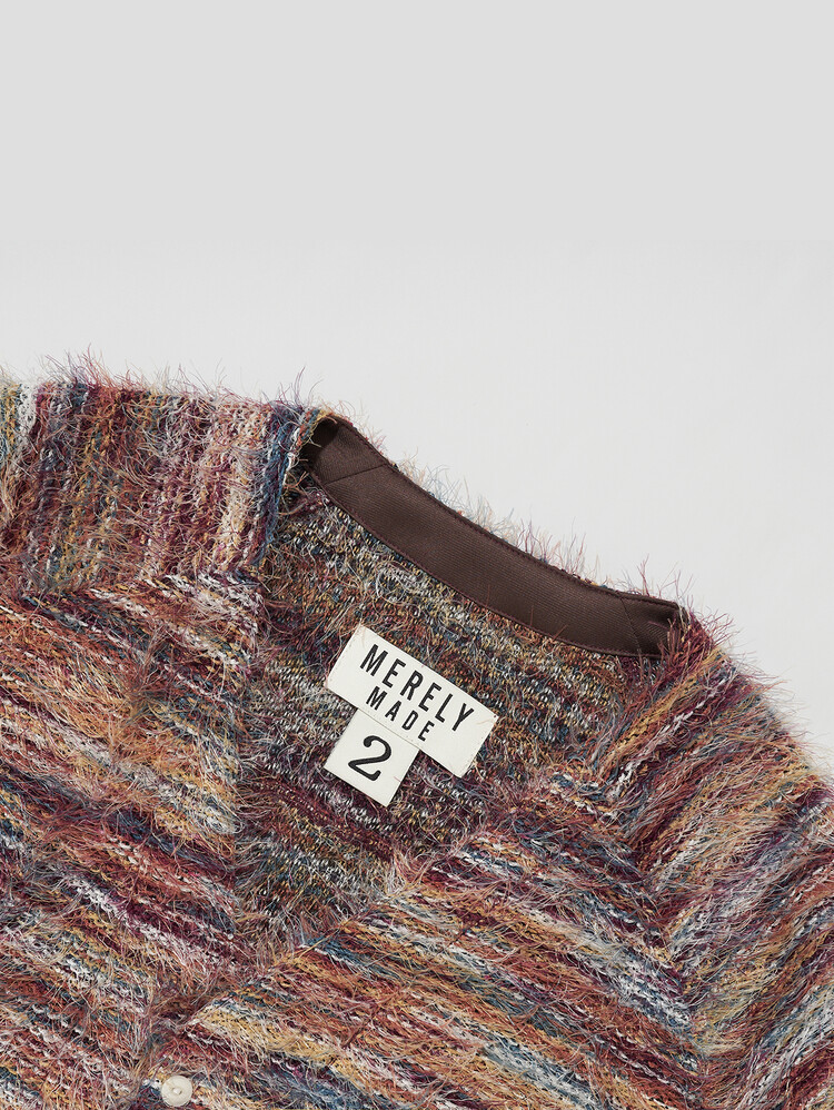 MERELY MULTI STRIPE RAINBOW MOHAIR CARDIGAN RAINBOW BURGUNDY