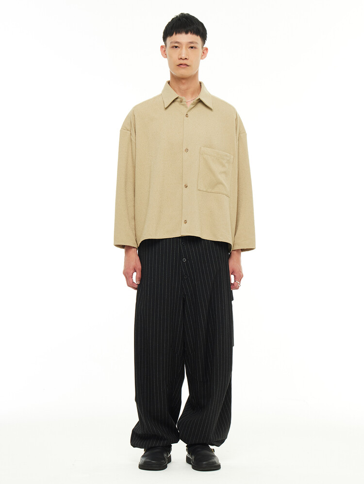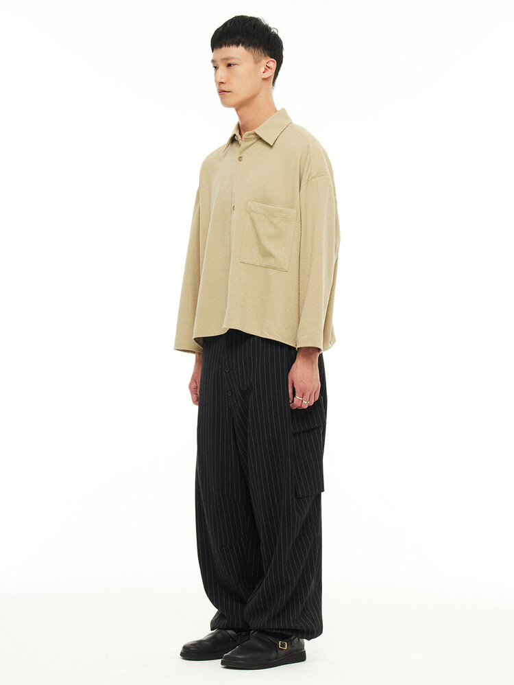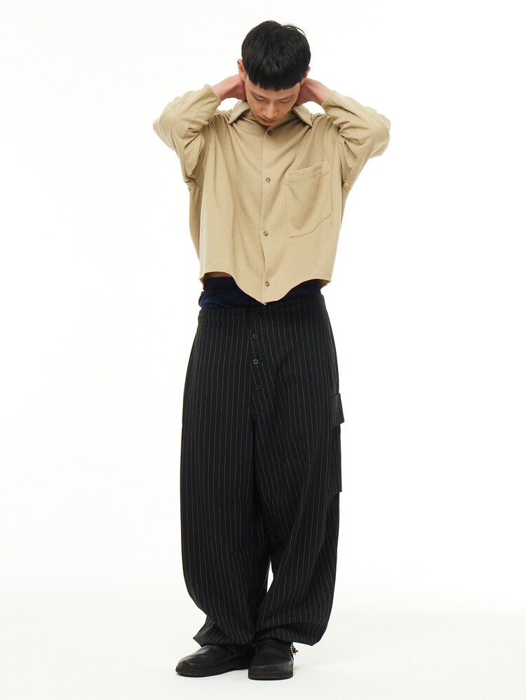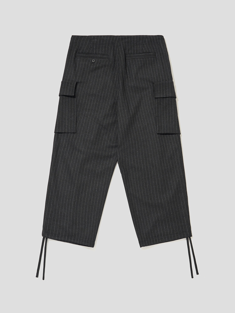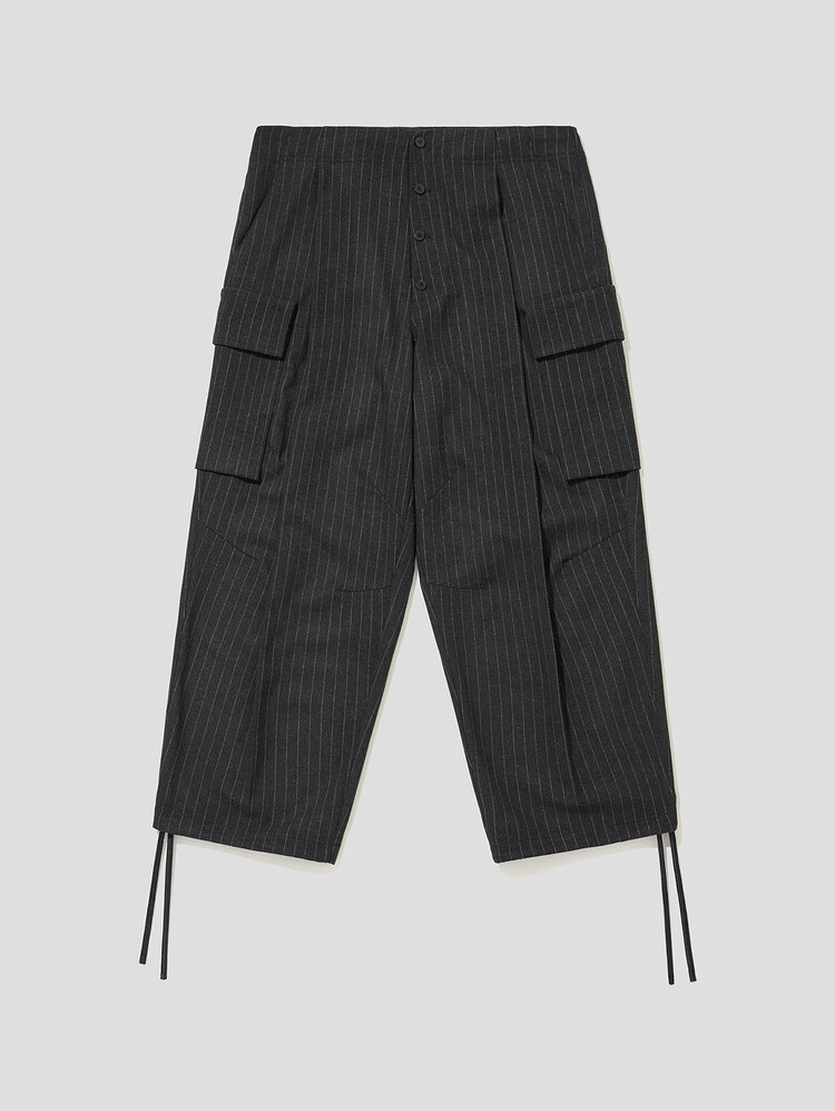 MERELY PREMIUM RELAXING WIDE CARGO PANTS RAVEN GRAY