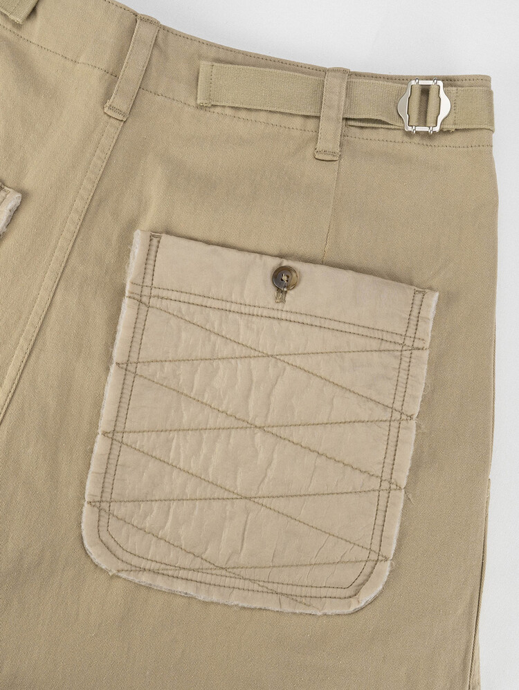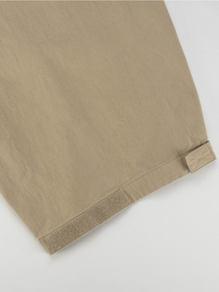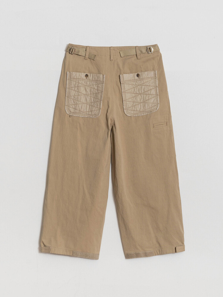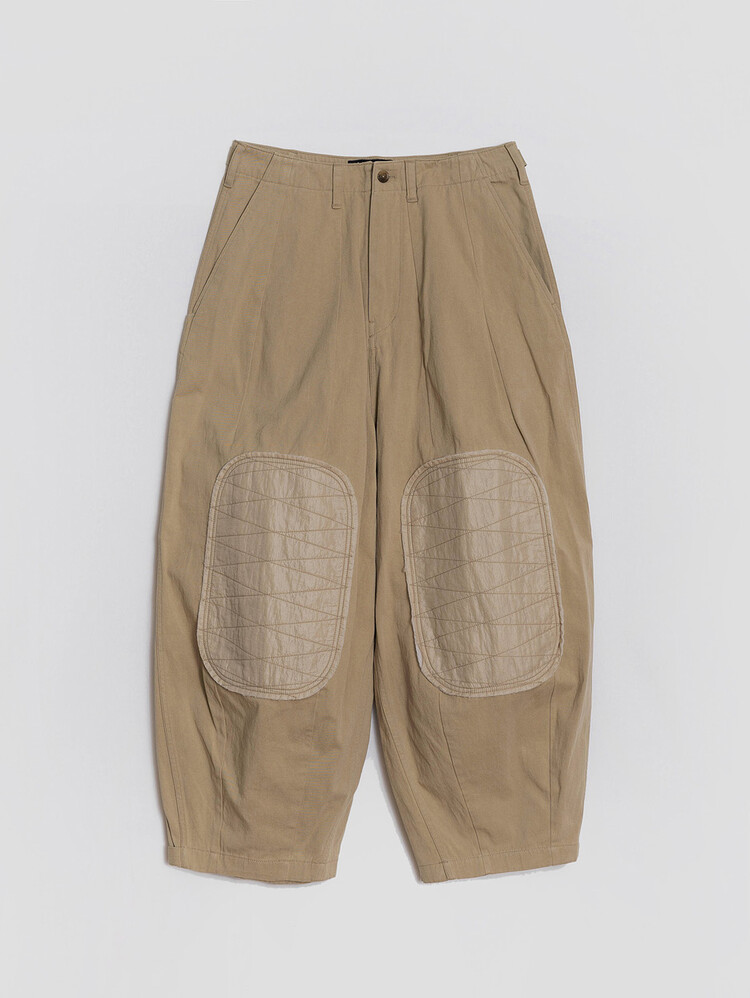 Inspired by Thailand's vintage culture, these are the 'QUILTED PATCH NOMADIC PANTS' the 8th edition of our best seller 'NOMADIC PANTS'. Its worn look is the main design element with its knee patches. The wide patch pockets and sunglasses pockets located at the bottom of the right thigh ensure enough storage. The Velcro tape at the bottom hem allows tailoring for a wider or slimer silhouette.