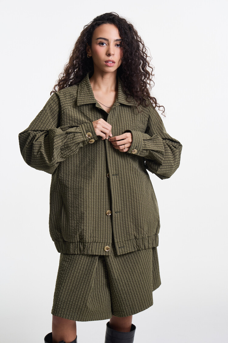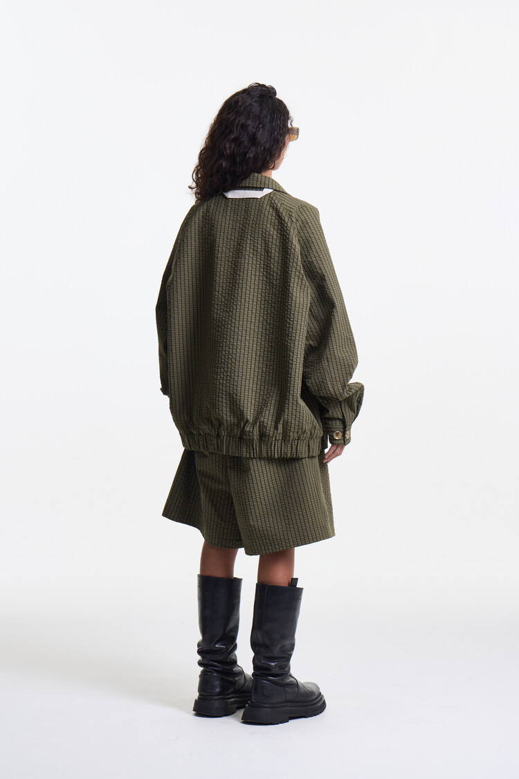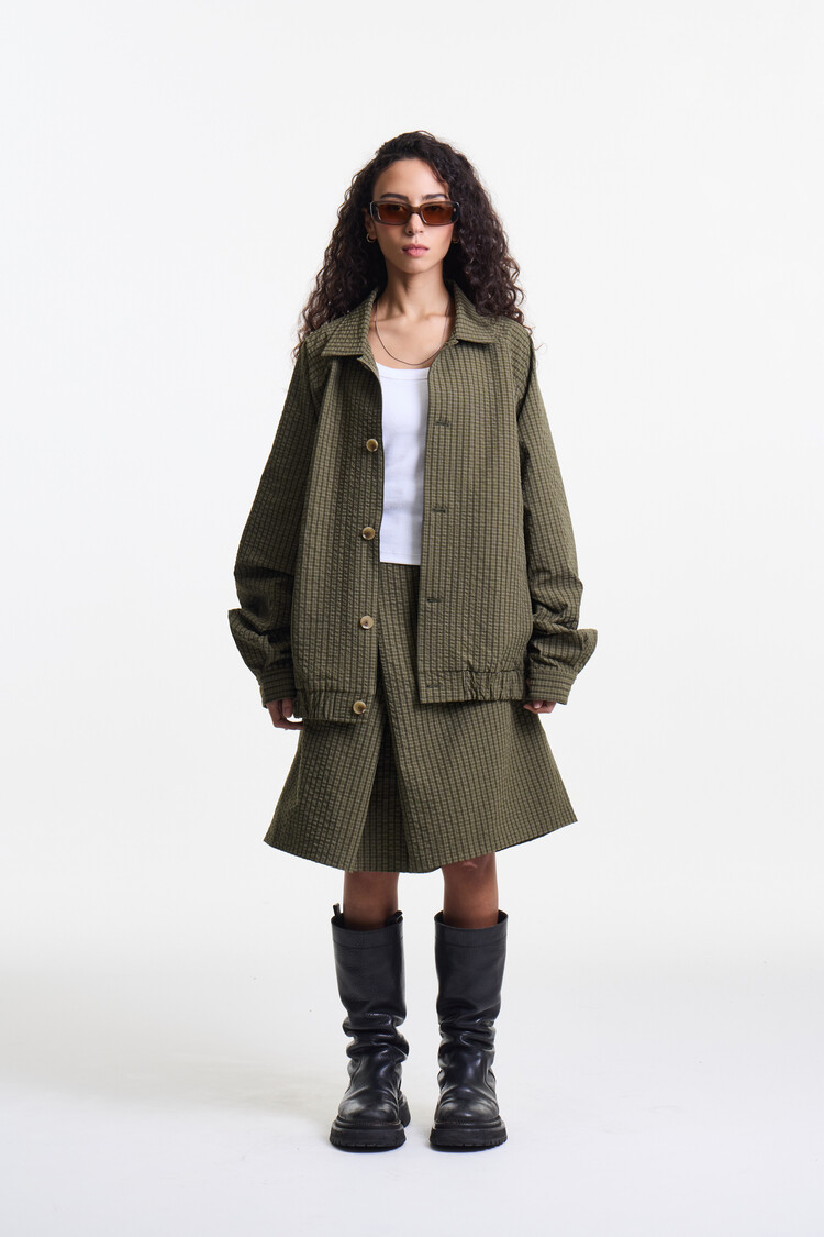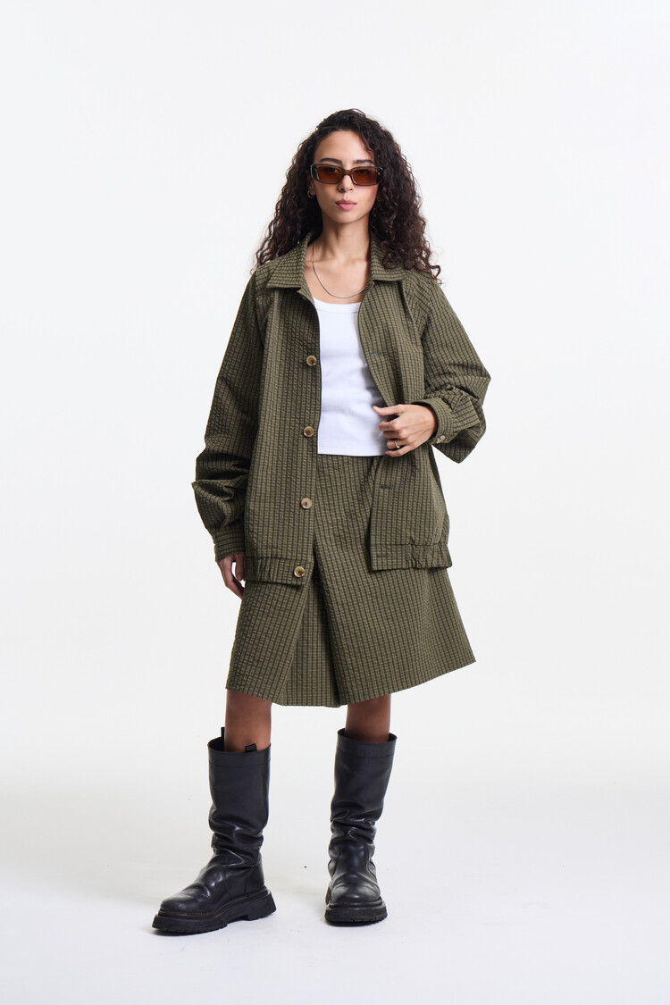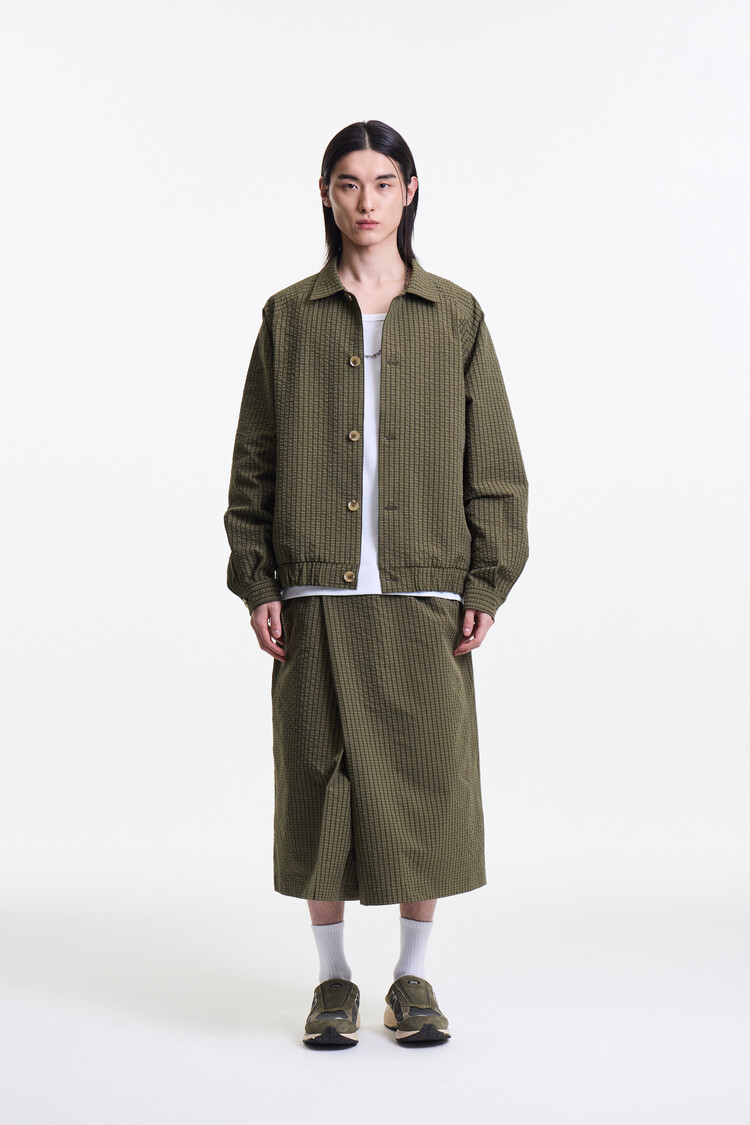 OLIVE CHECK PREMIUM LIGHT WEIGHT SKIRT PANTS