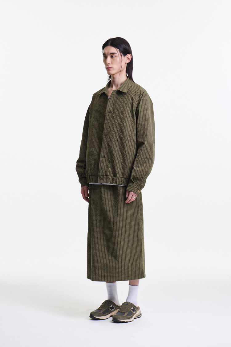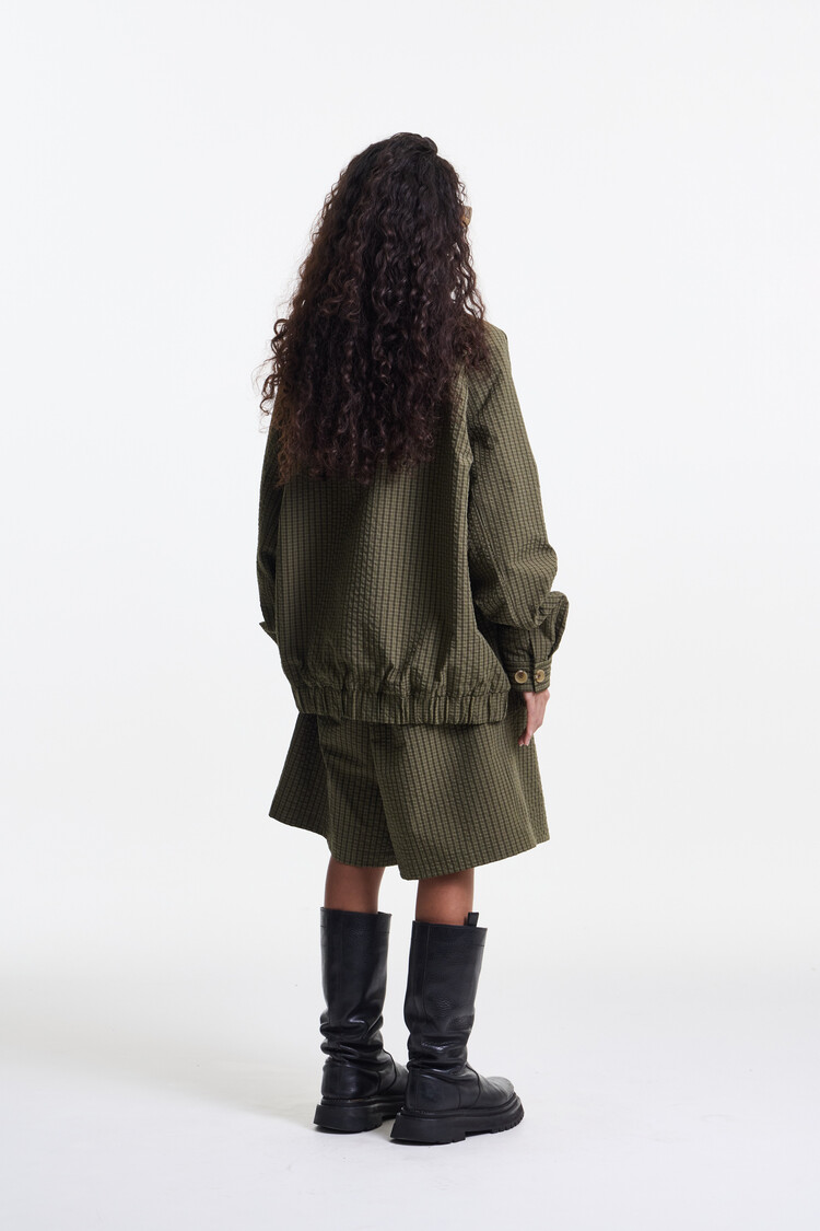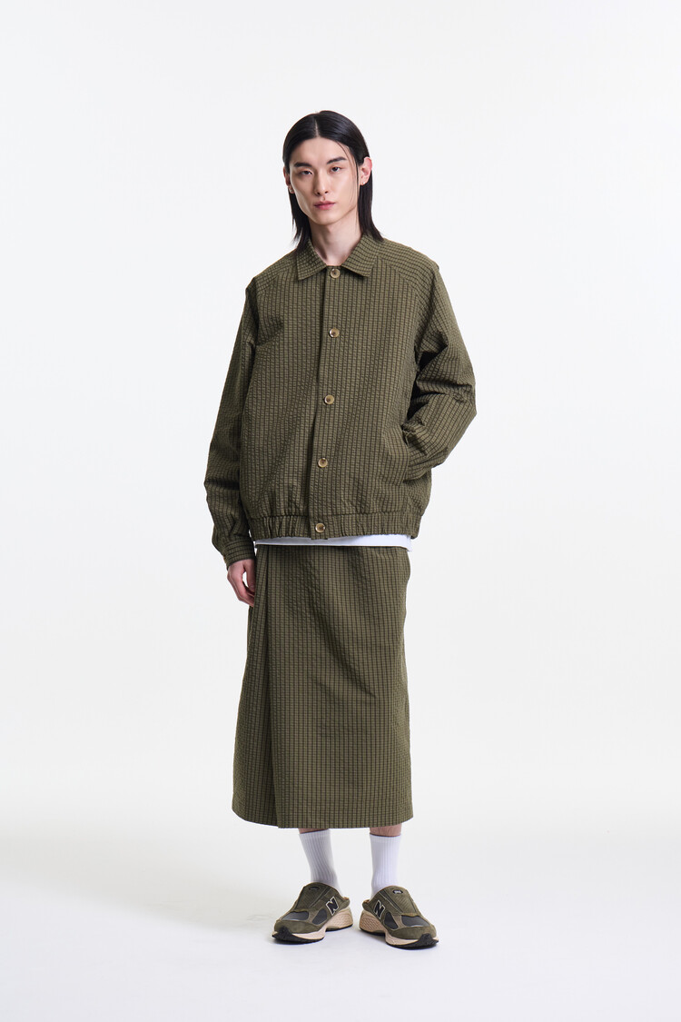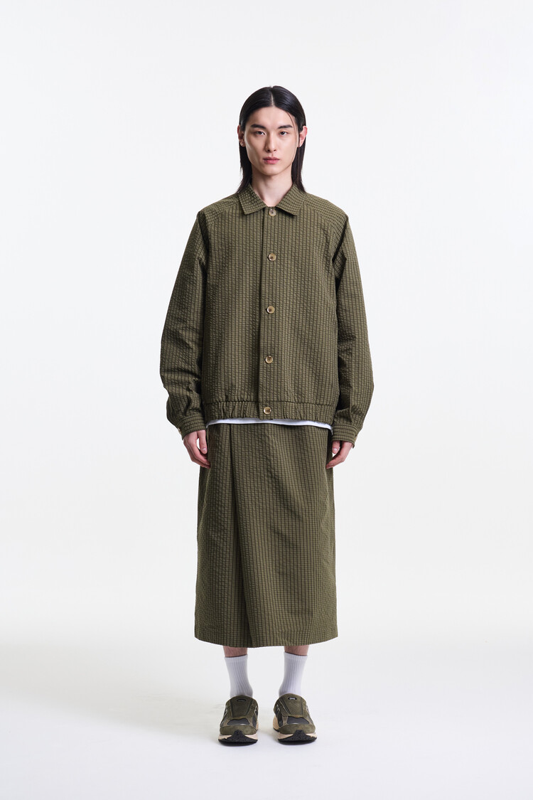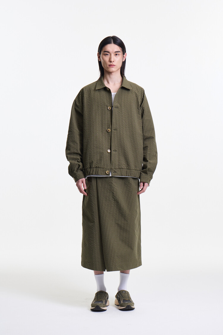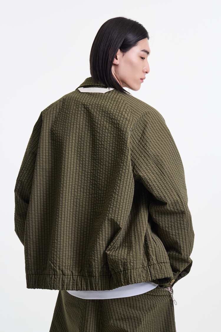 OLIVE CHECK PREMIUM BUBBLE CHECK RAGLAN BLOUSON