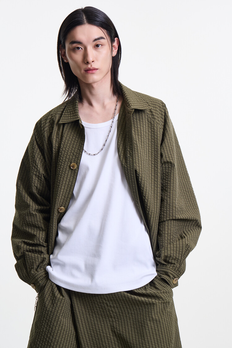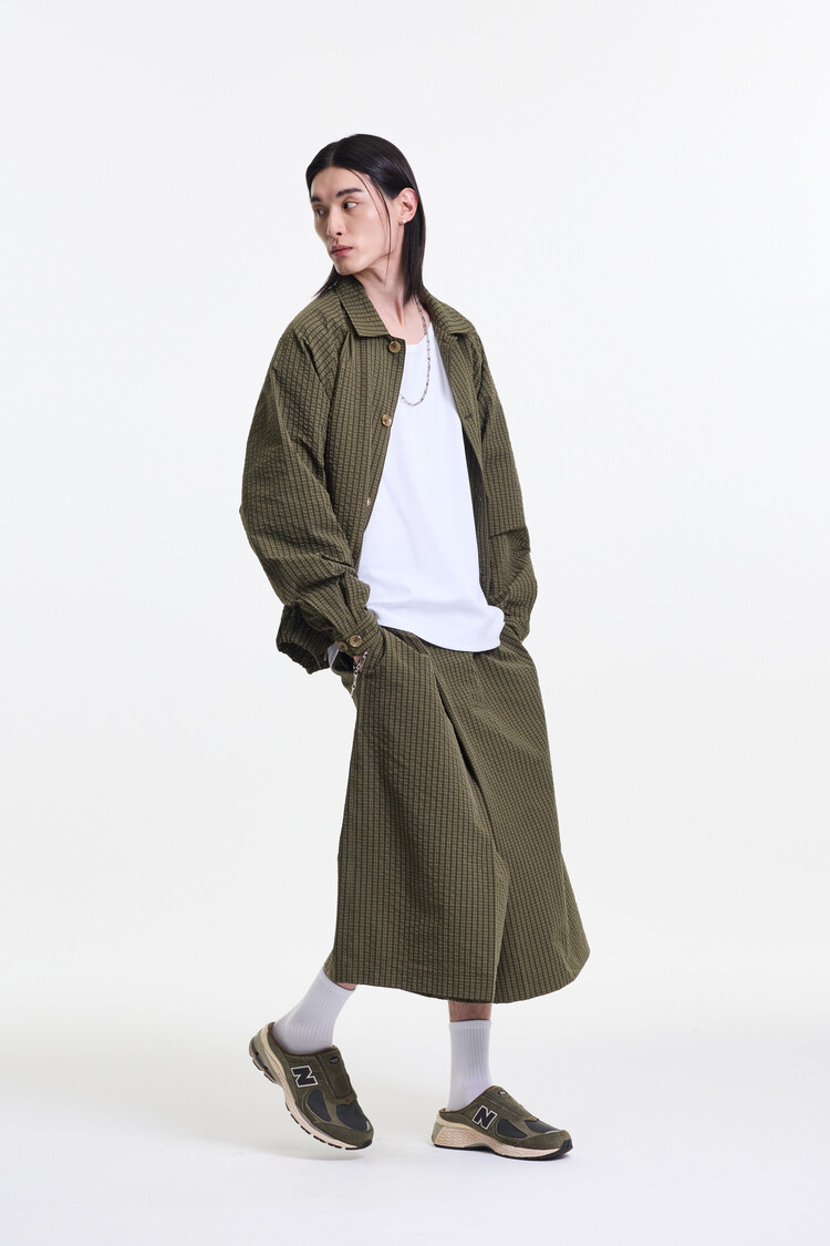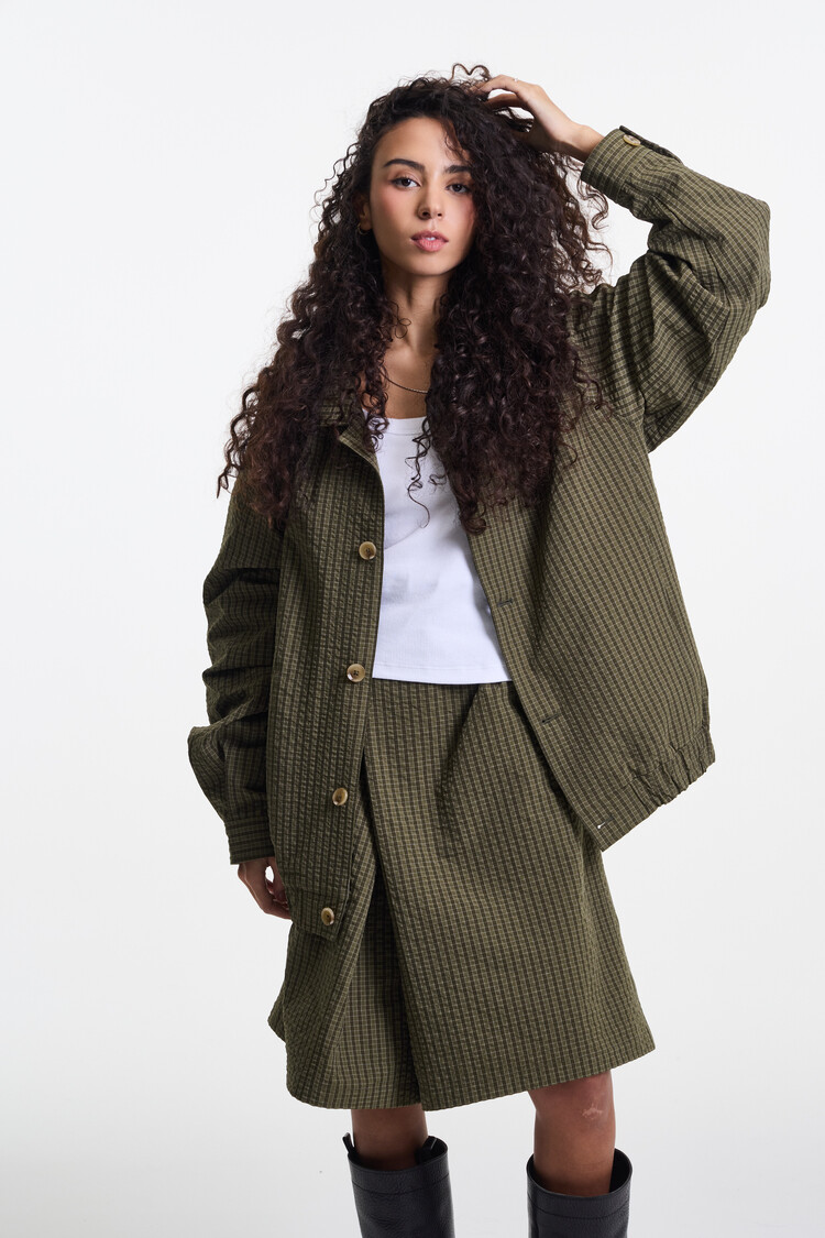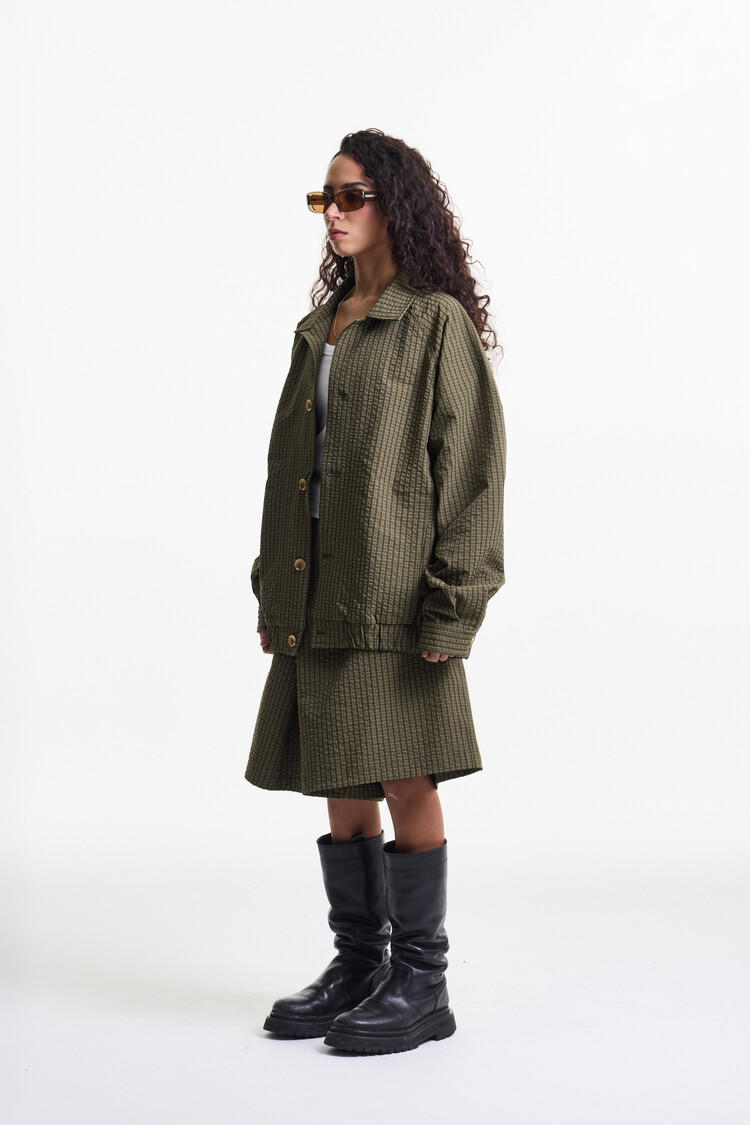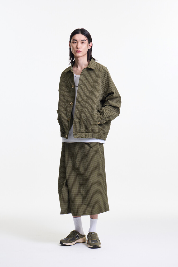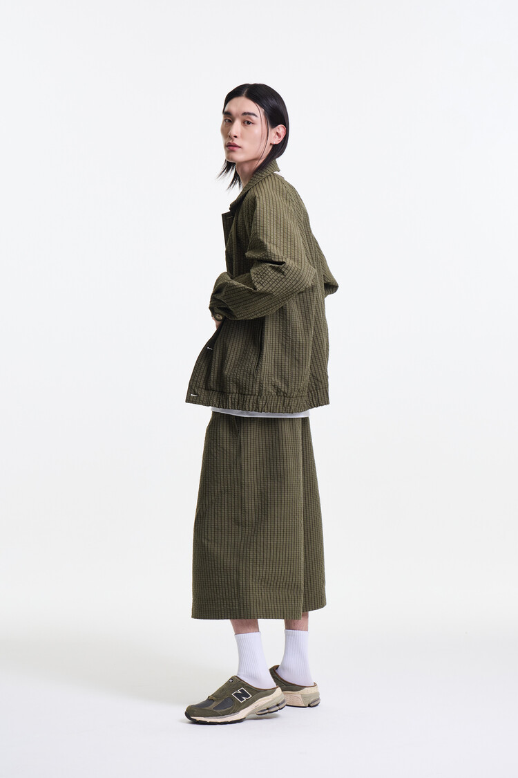 OLIVE CHECK PREMIUM BUBBLE CHECK RAGLAN BLOUSON