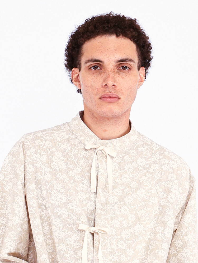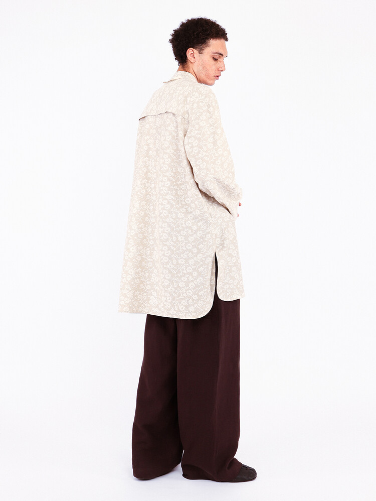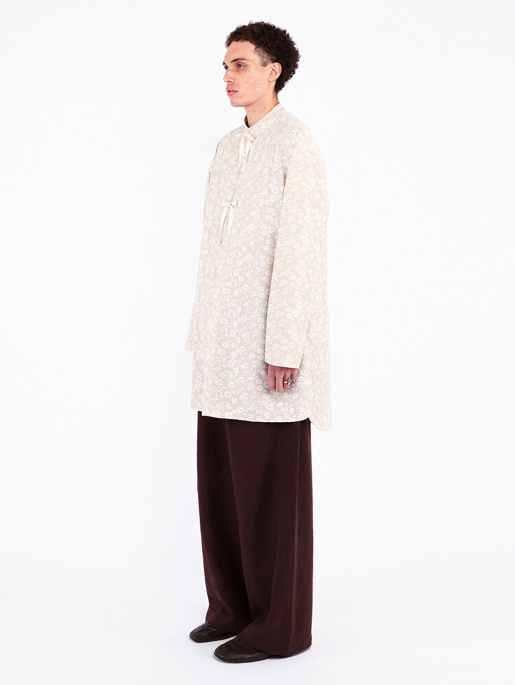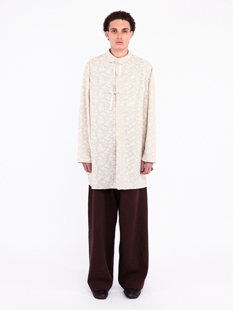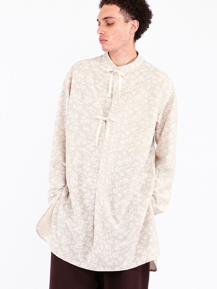 PEARL IVORY MERELY PREMIUM FLOWER JACQUARD LACE LONG SHIRTS