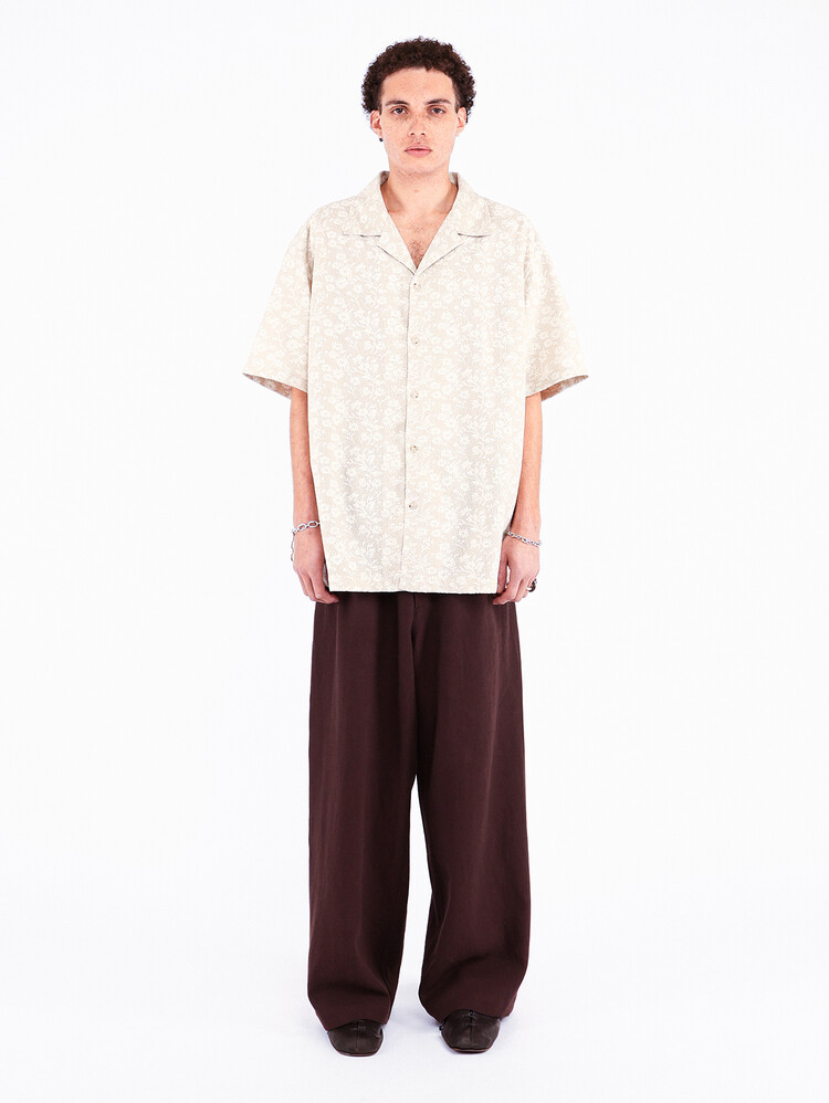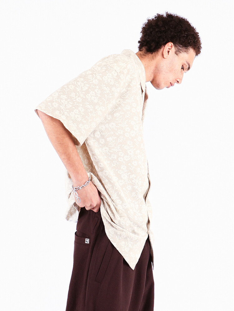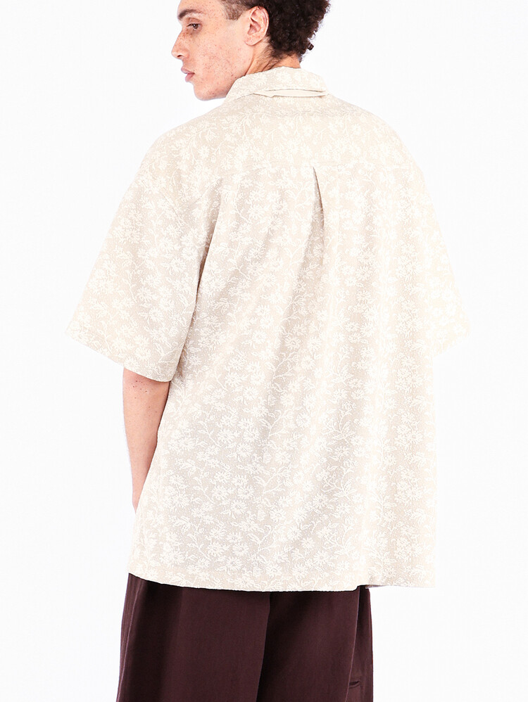 PEARL IVORY MERELY FLOWER JACQUARD LACE CUBAN COLLAR SHIRT