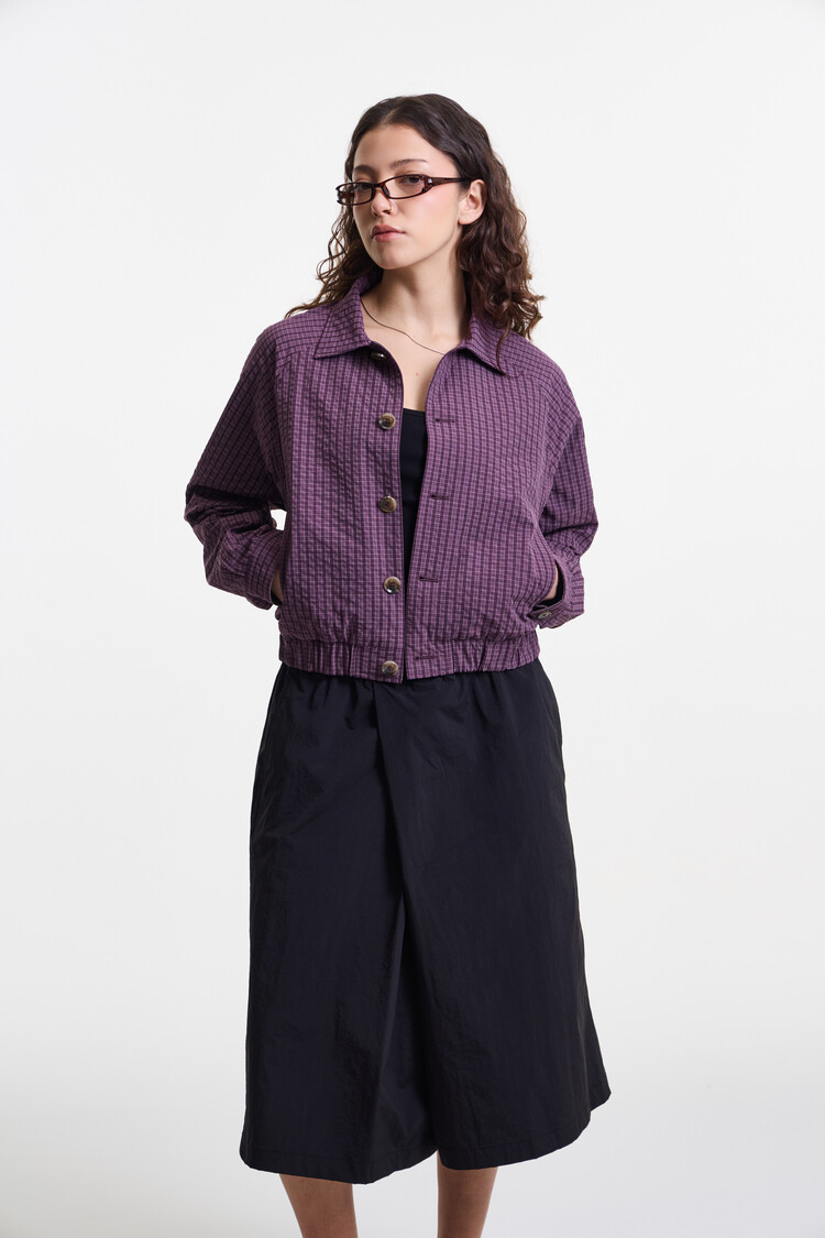PURPLE CHECK PREMIUM BUBBLE CHECK RAGLAN BLOUSON