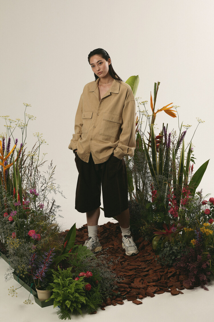 'THAI MASSAGE PANTS' and 'VINTAGE WORK JACKET' are suggested as a matching set. The thick vintage gabardine fabric of Japan's 'KOYAMA' is used as a base, and standard design details are adopted for a versatile and stylish item. A total of four pockets, including two large patch pockets on the chest and a slit pocket on the side, guarantee storage. By applying post-processing washing, the texture and touch of the fabric feel natural and luxurious.