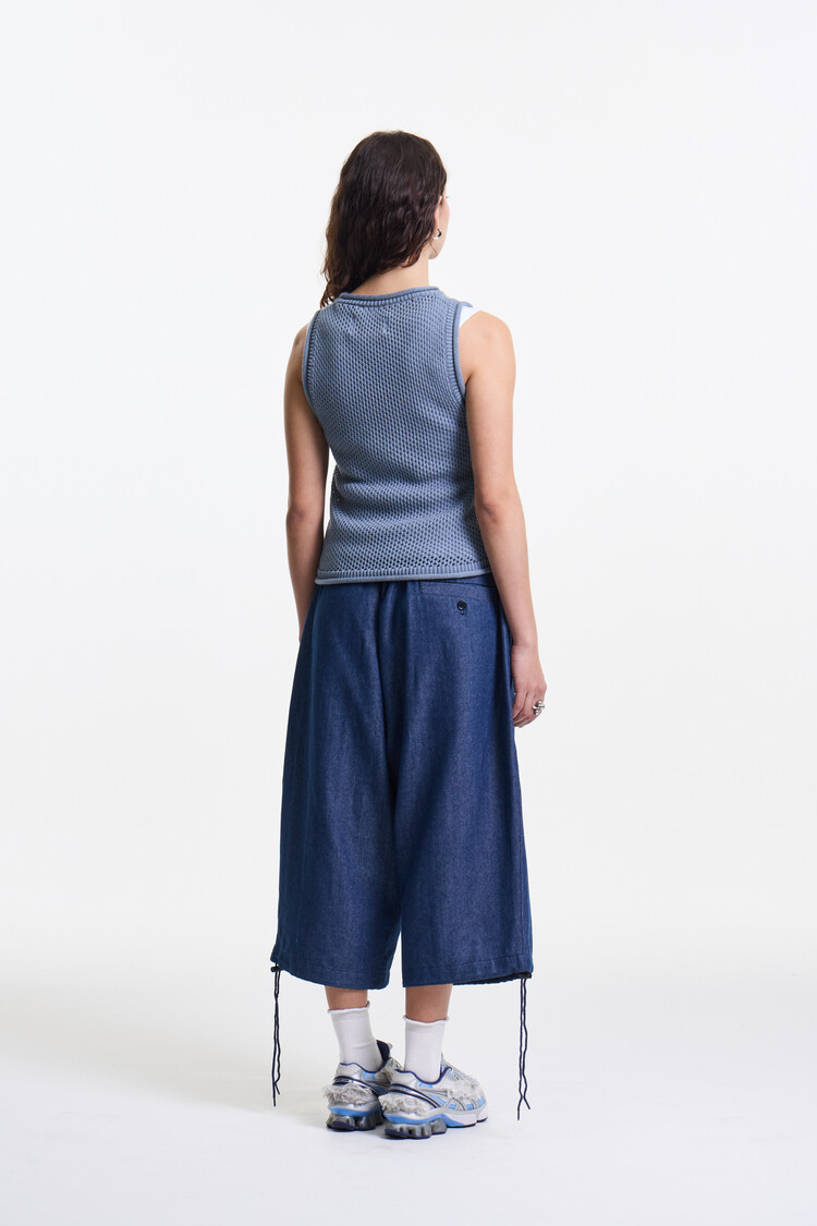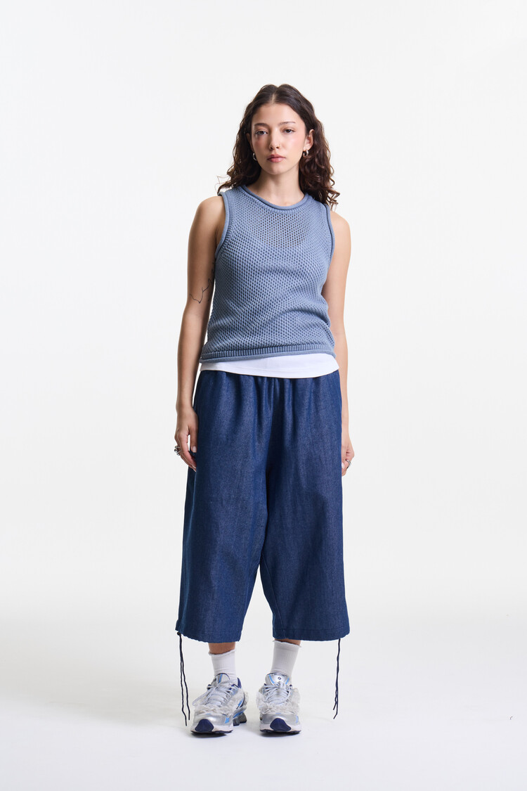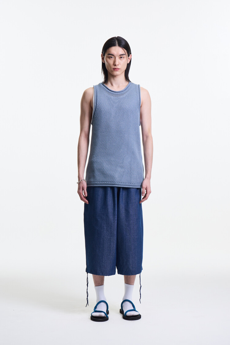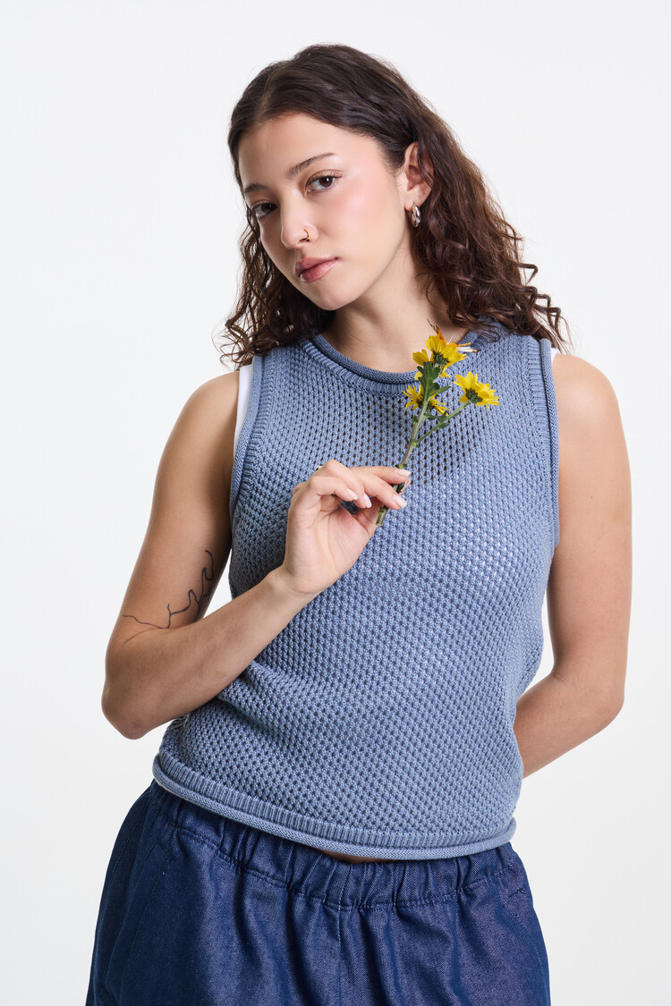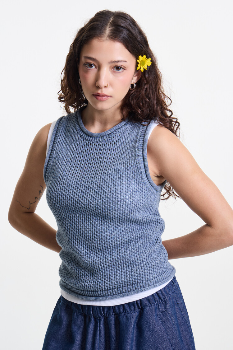 SKY BLUE PREMIUM MELANGE NETTING KNIT SLEEVELESS
