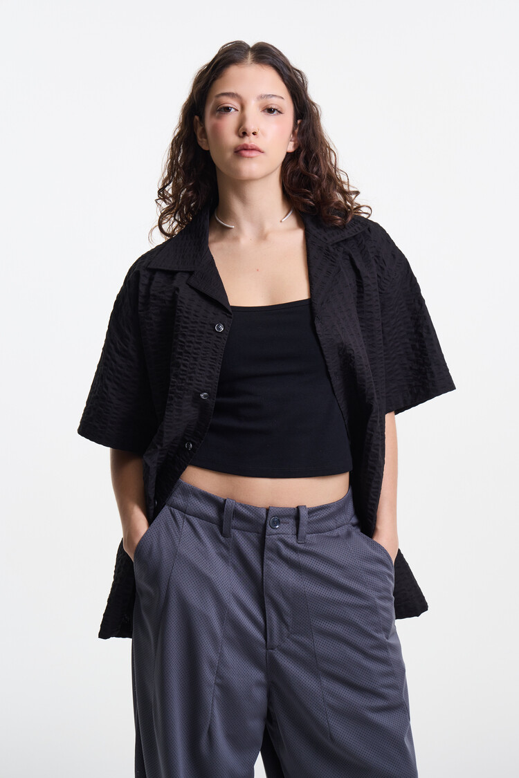 - Wide patched back pocket