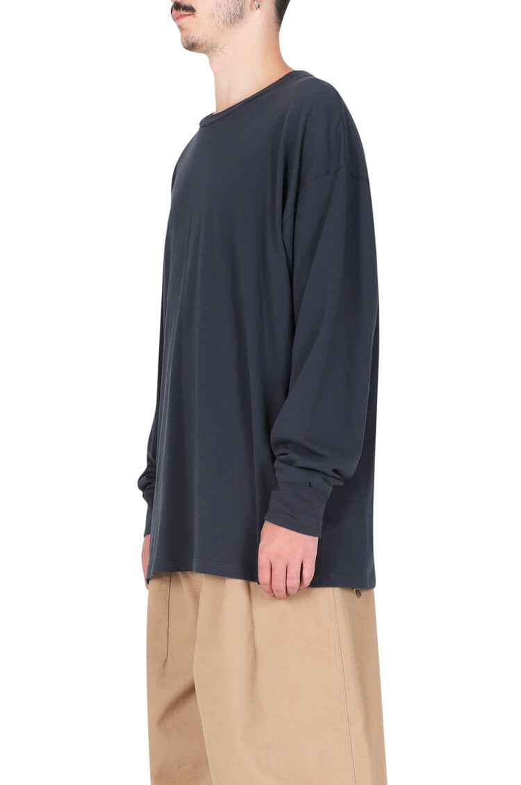 골드컬러를 머금은 COFFEE BROWN, 잿빛이 감도는 CAPE NAVY, 따스함과 차가움이 공존하는 STONE GREY까지 총 3가지 컬러웨이로 출시된 'MERELY LONG SLEEVE T-SHIRTS' 입니다.